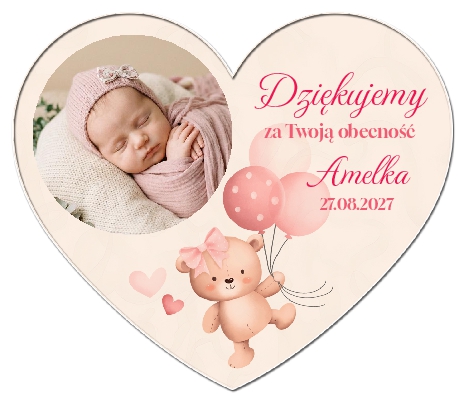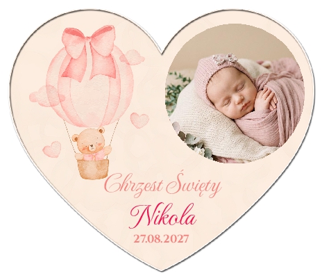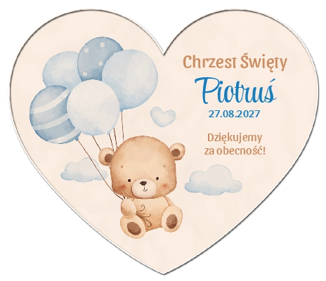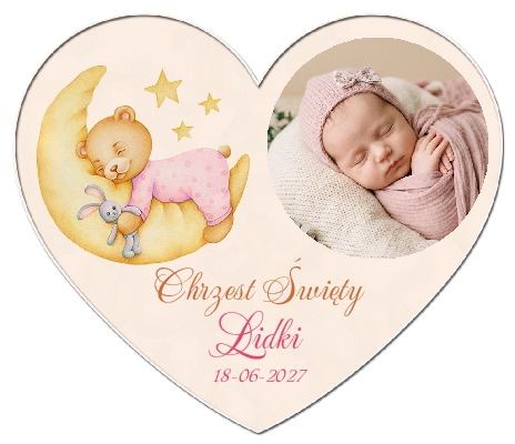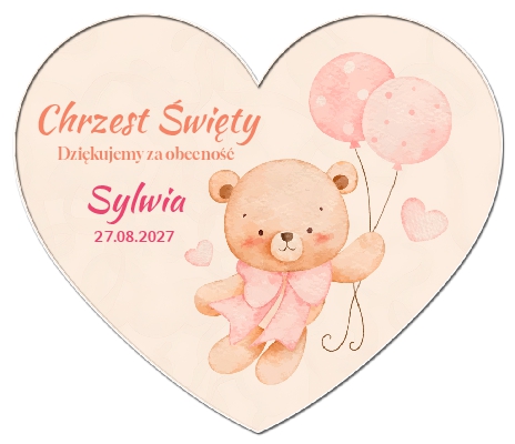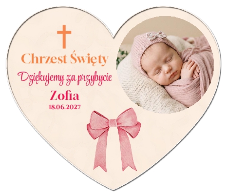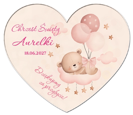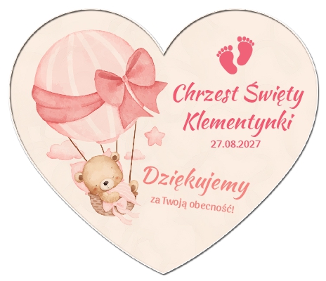 Zaproszenia na chrzest z zawieszką w kształcie serduszka - Bessie