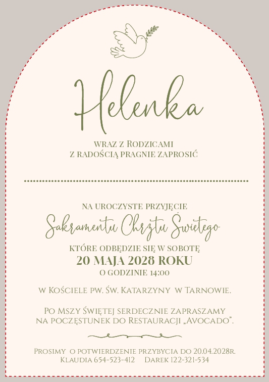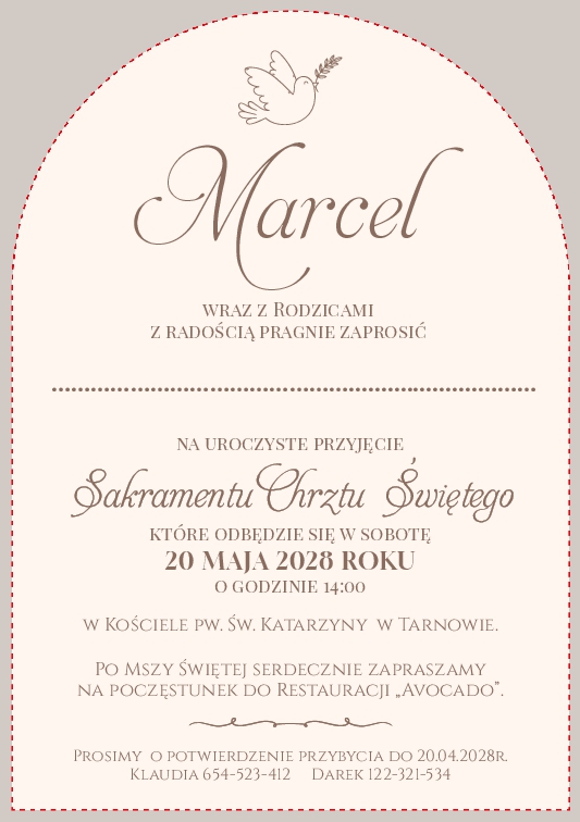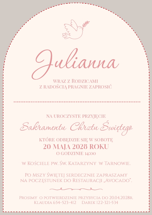(Zaproszenia na chrzest łuk ze zdjęciem - Aida)