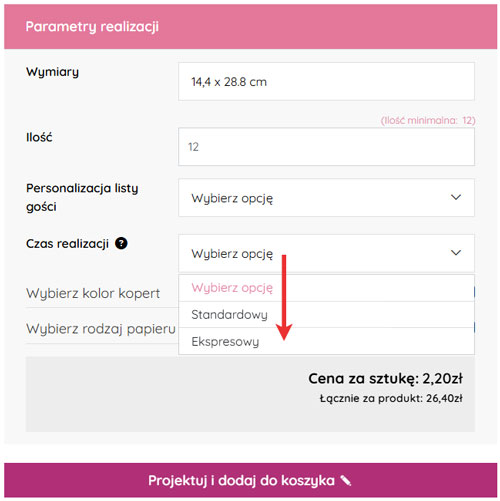 - Przejdź do kreatora przyciskiem "Projektuj i dodaj do koszyka".