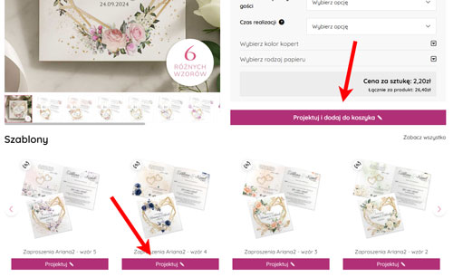 Możesz również kliknąć "Projektuj" przy wybranym szablonie na stronie produktu.