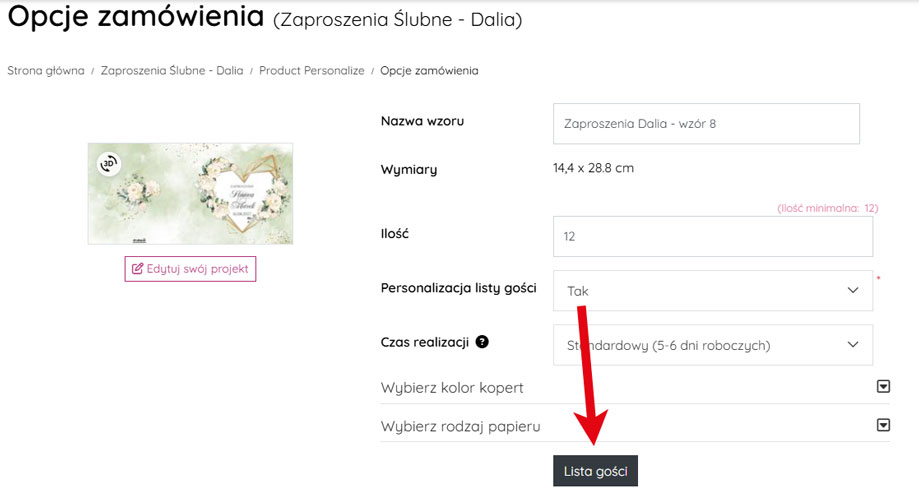 Możesz wtedy podać listę gości, jeśli masz wybraną opcję "Tak" przy personalizacji listy gości.