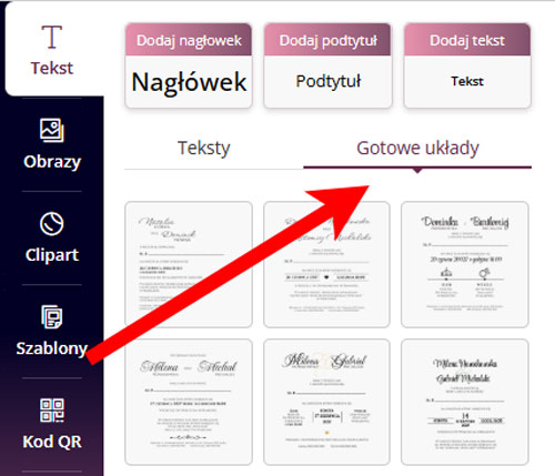 - Z zakładki po lewej stronie "Szablony" wybierz szablon, który najbardziej Ci się podoba.