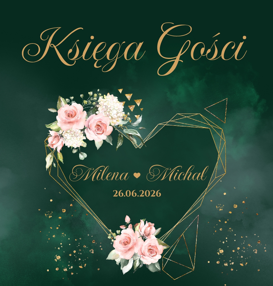 Zaproszenia ślubne składane - Rozalia - ze złotym serduszkiem
