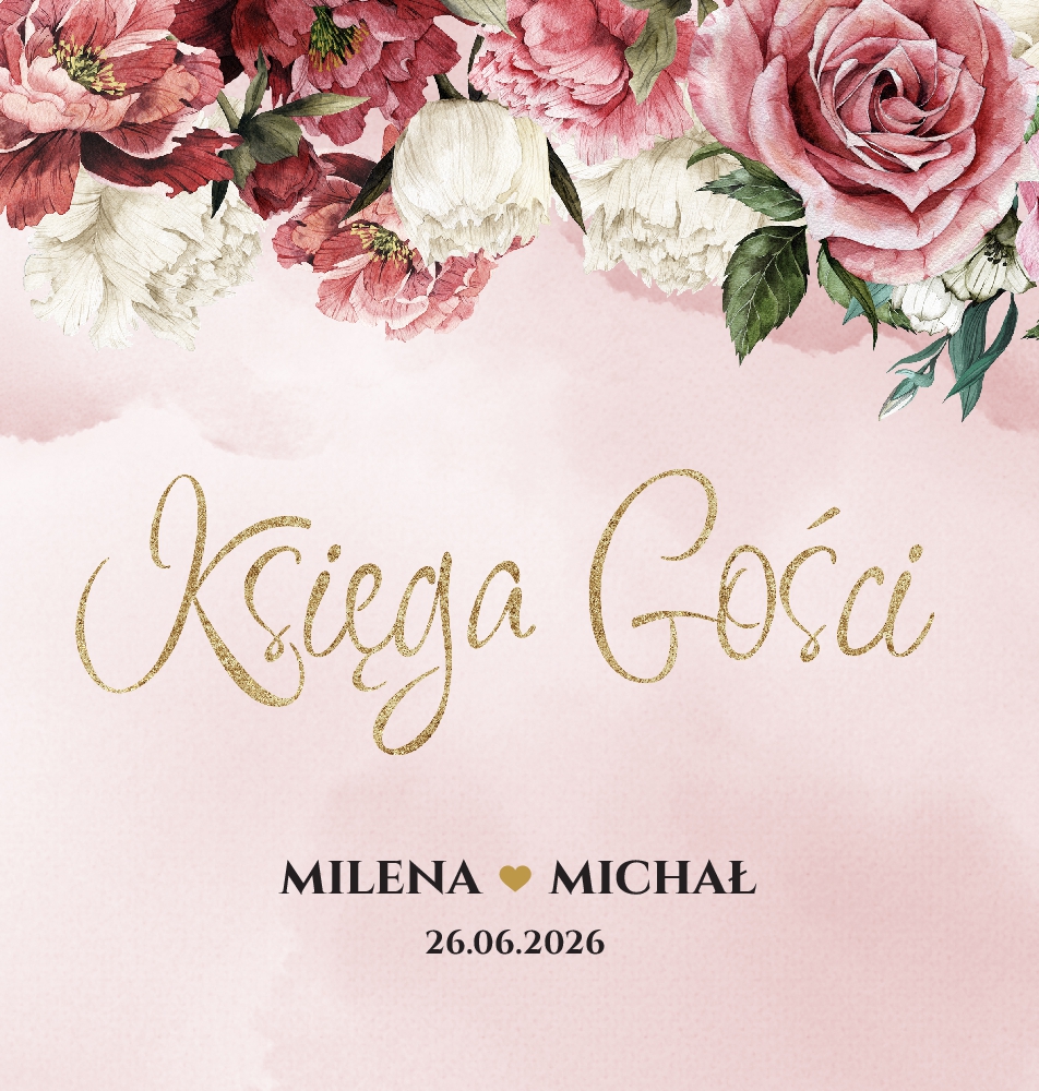 Złocone zaproszenia Ślubne - Peonia