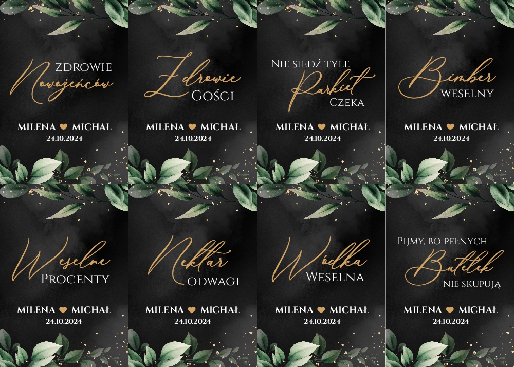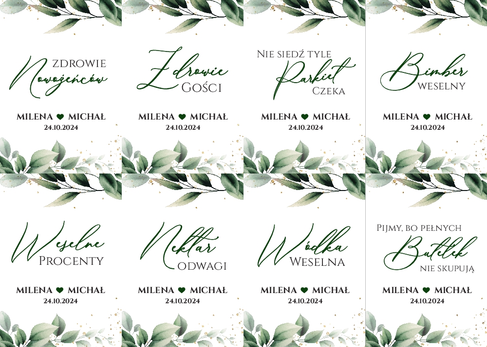 Naklejki na wódkę weselną 8szt - Eukaliptus
