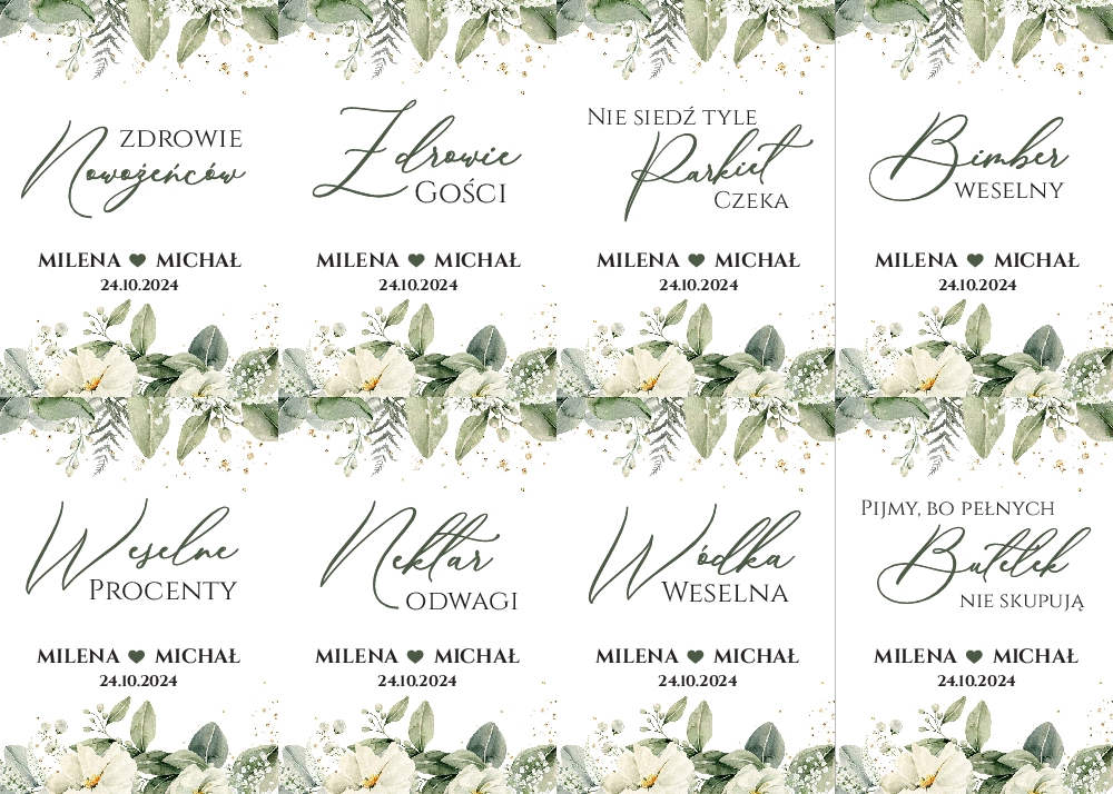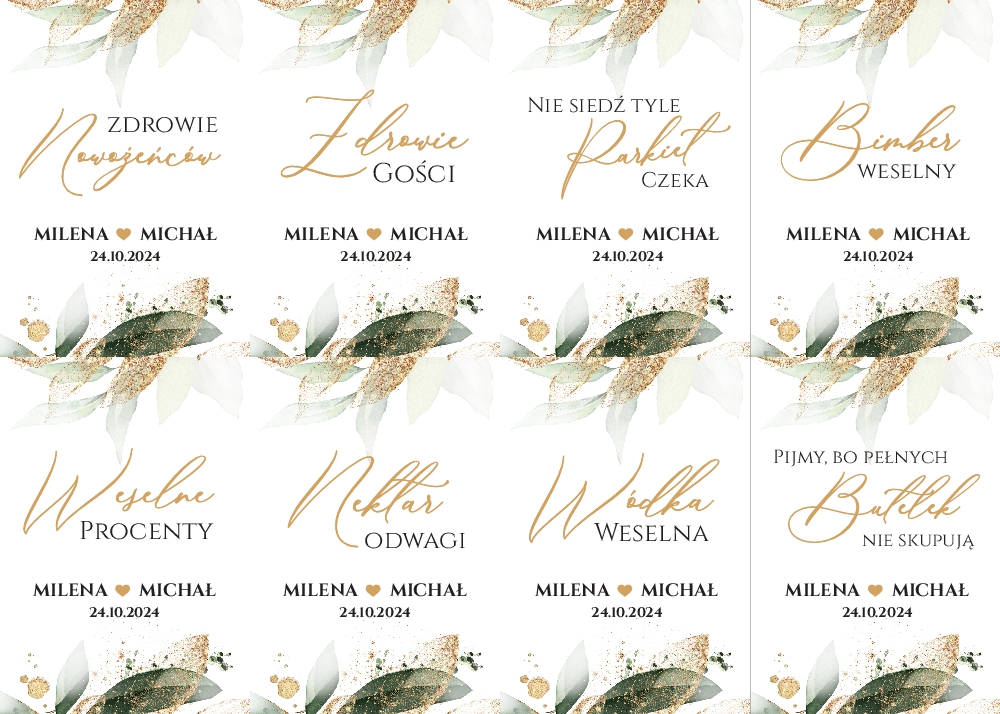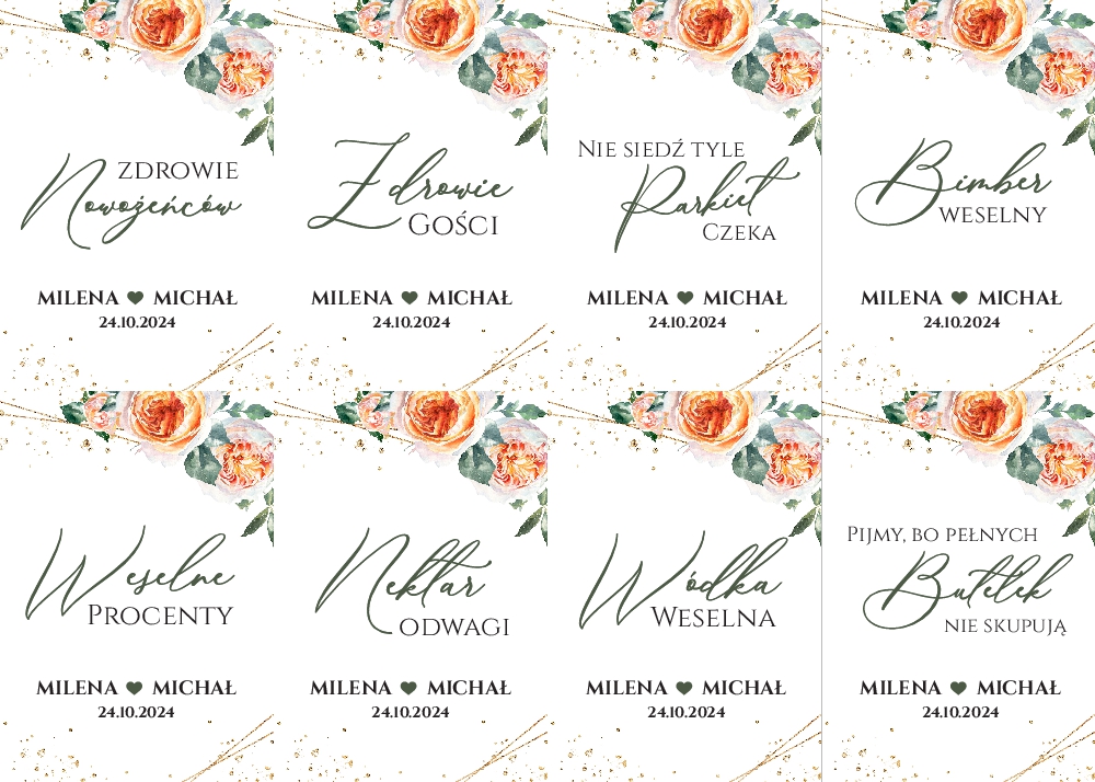 Naklejki na wódkę weselną 8szt - Irelia