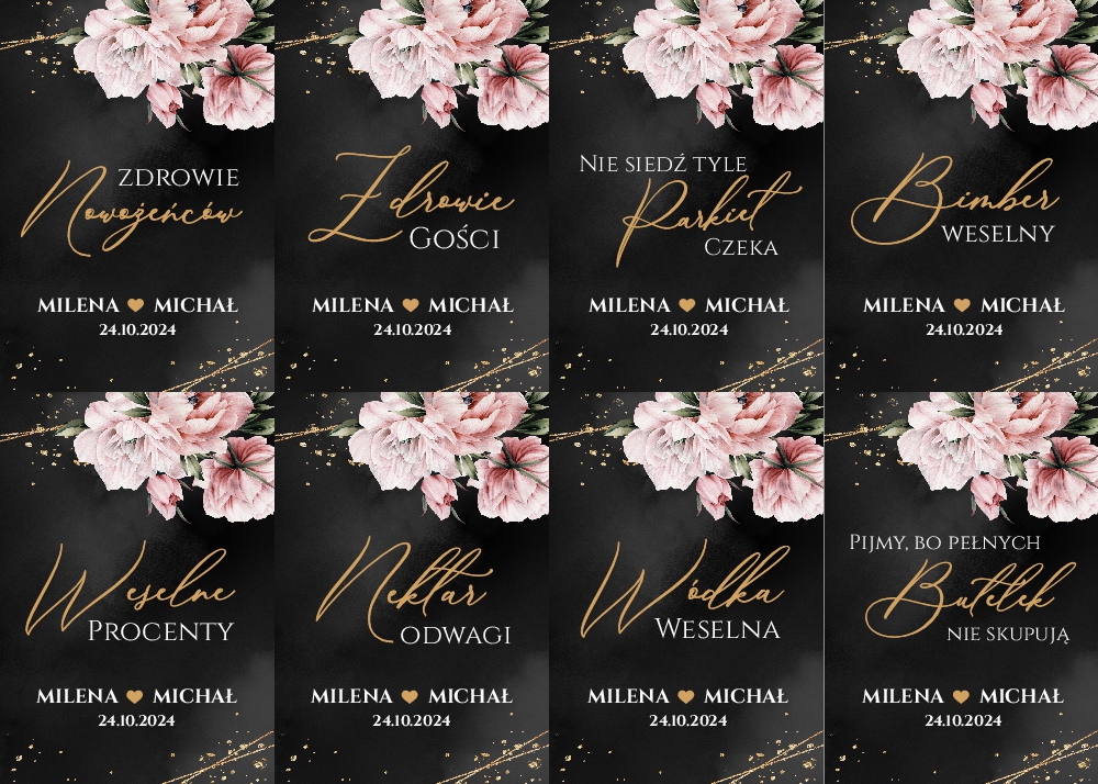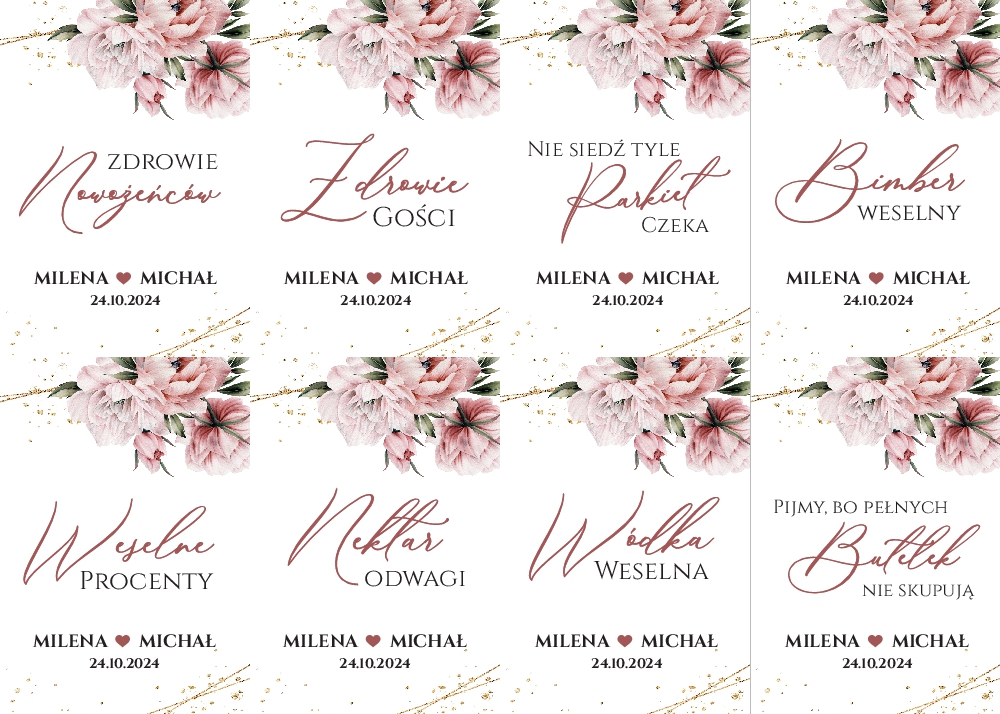 Naklejki na wódkę weselną 8szt - Rose
