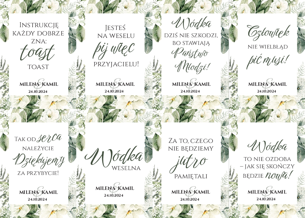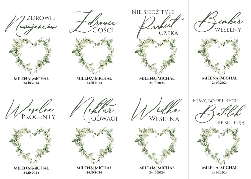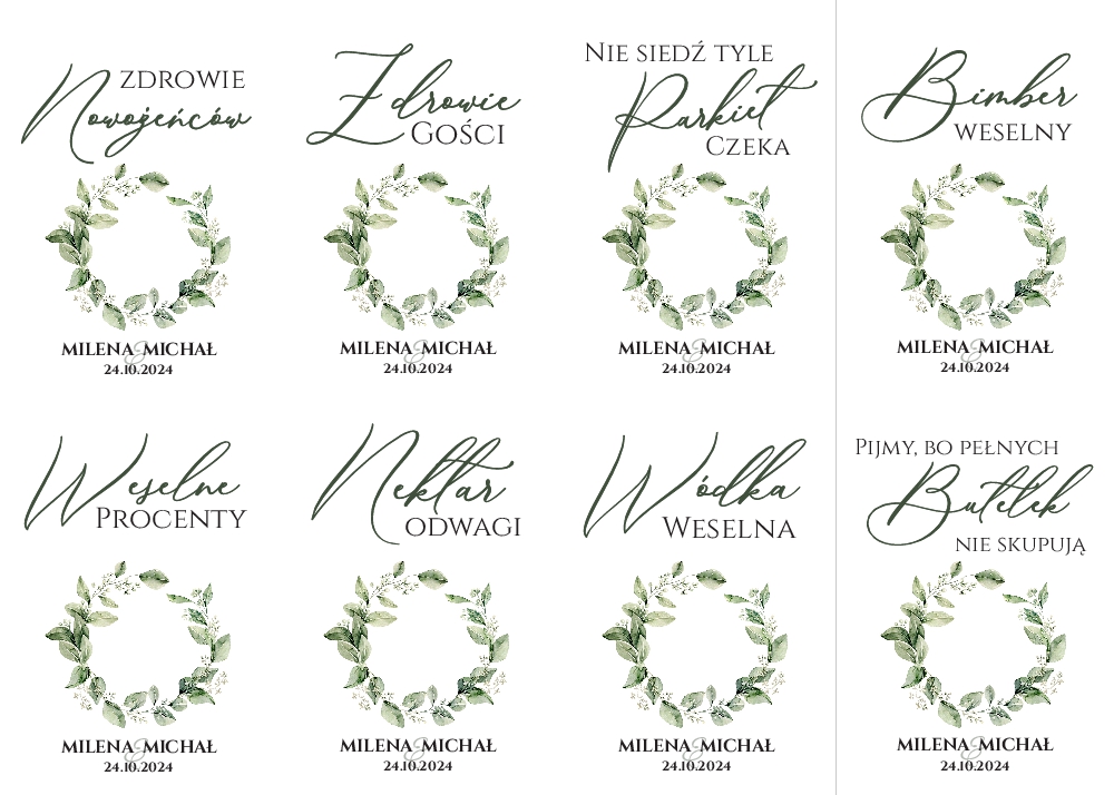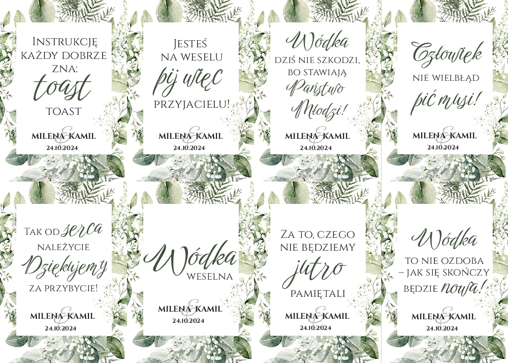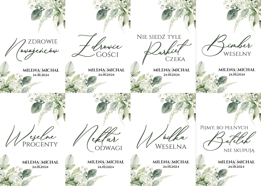 Naklejki na wódkę weselną 8szt - Eukaliptus