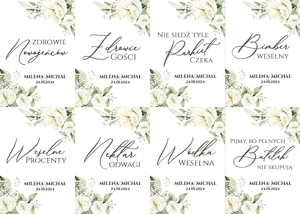 Naklejki na wódkę weselną 8szt - Gipsówka