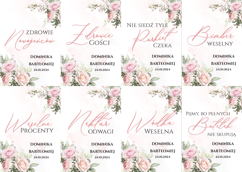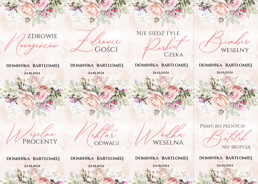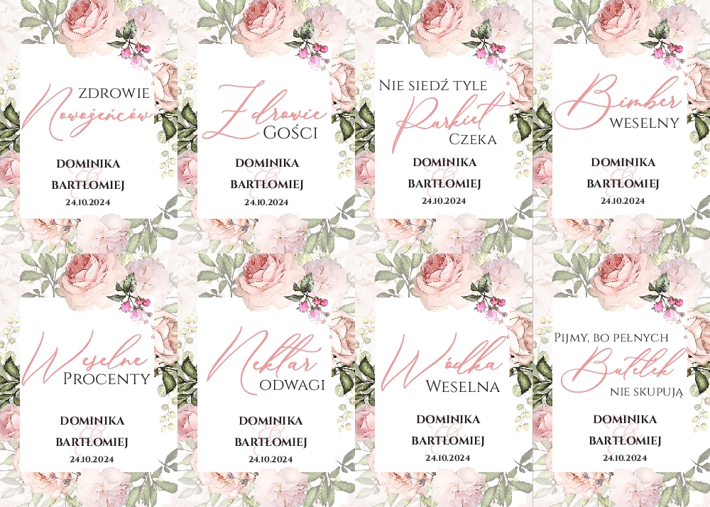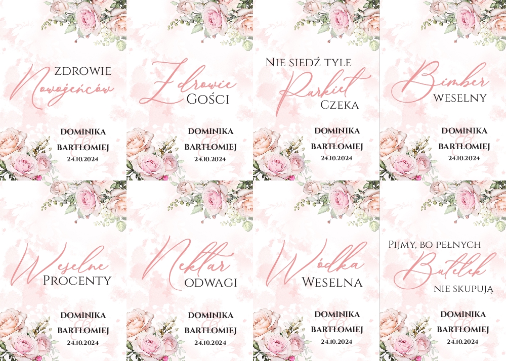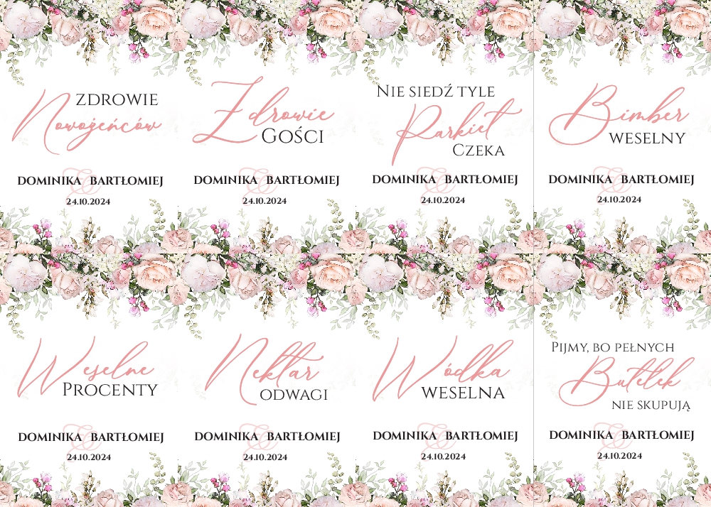 Naklejki na wódkę weselną 8szt - Gipsówka
