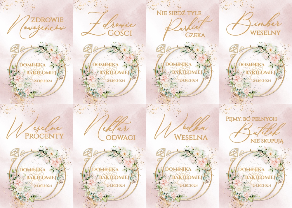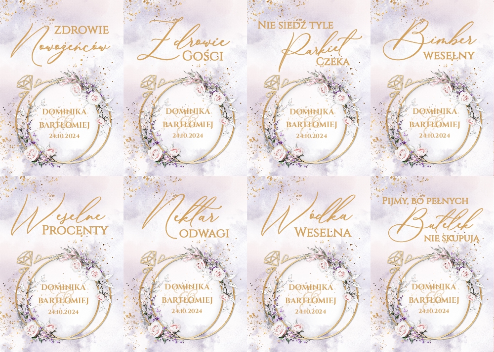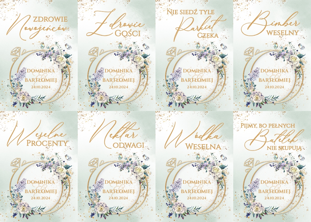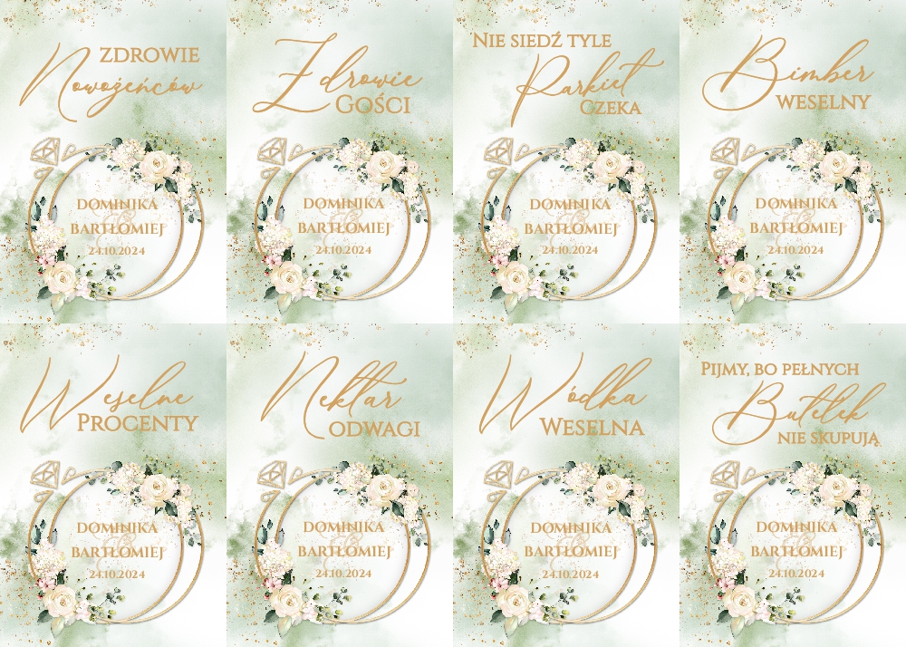 Naklejki na wódkę weselną 8szt - Irelia