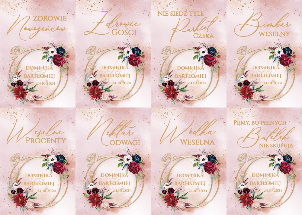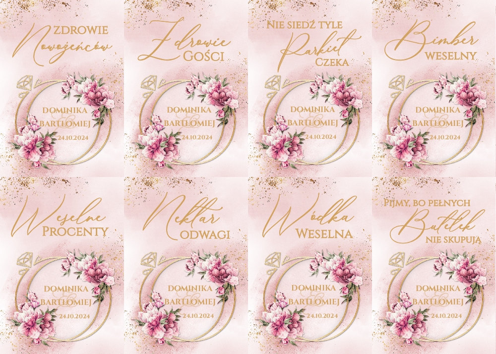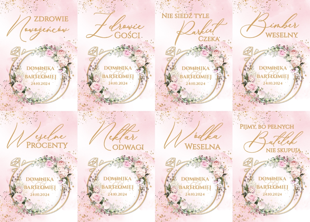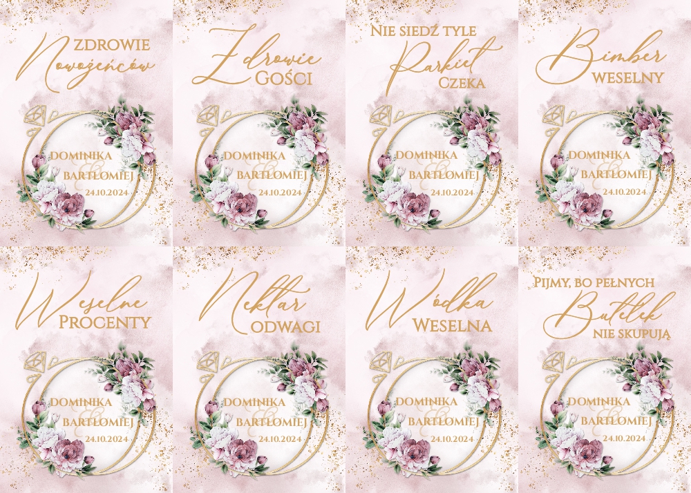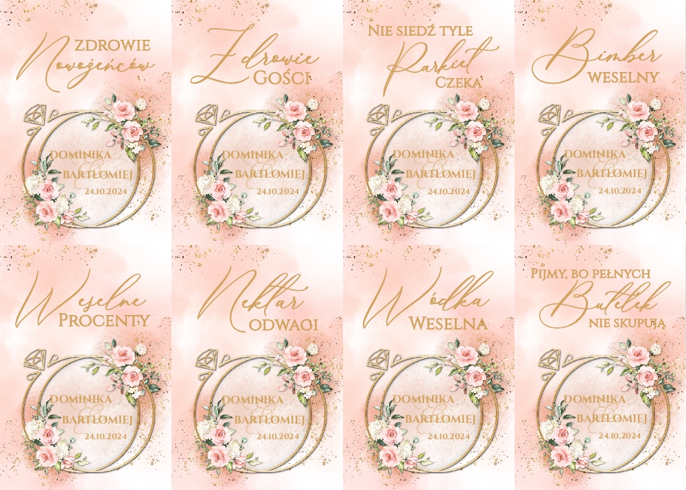 Naklejki na wódkę weselną 8szt - Rose