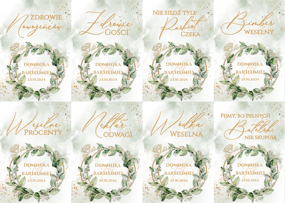 Naklejki na wódkę weselną 8szt - Eukaliptus