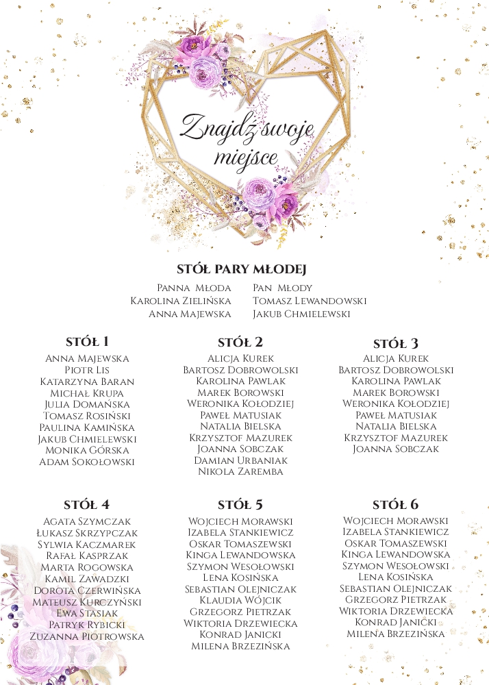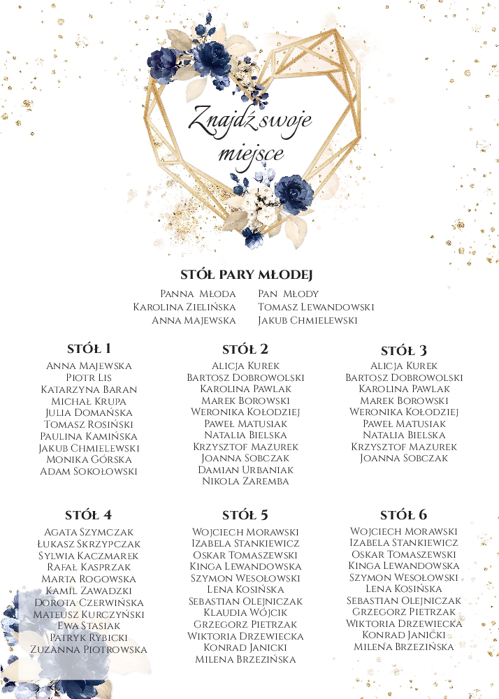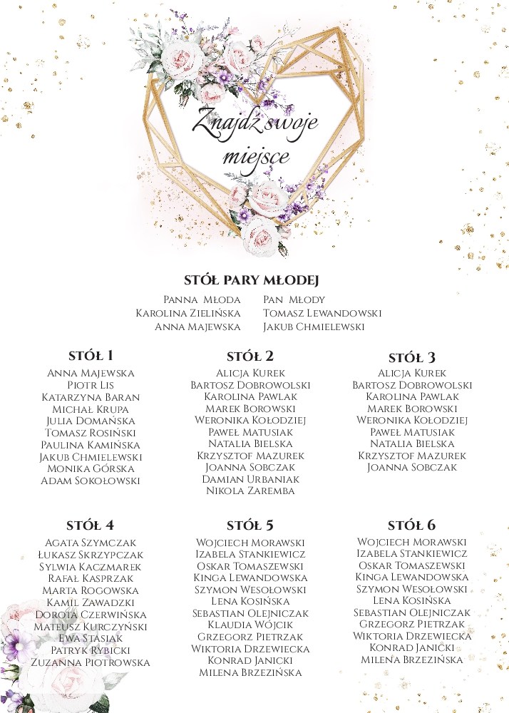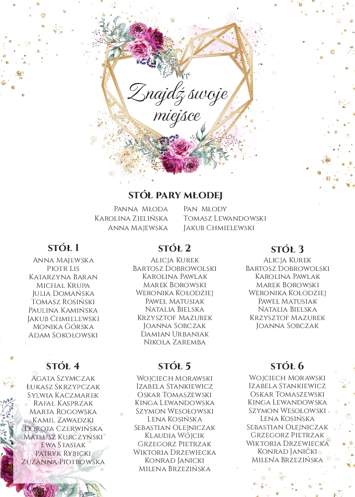 (Tablica z usadzeniem gości 50x70cm PION - Ariana2)