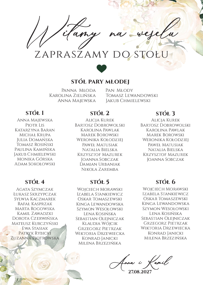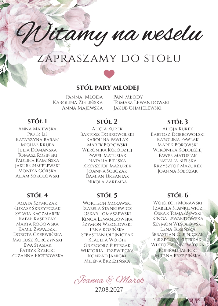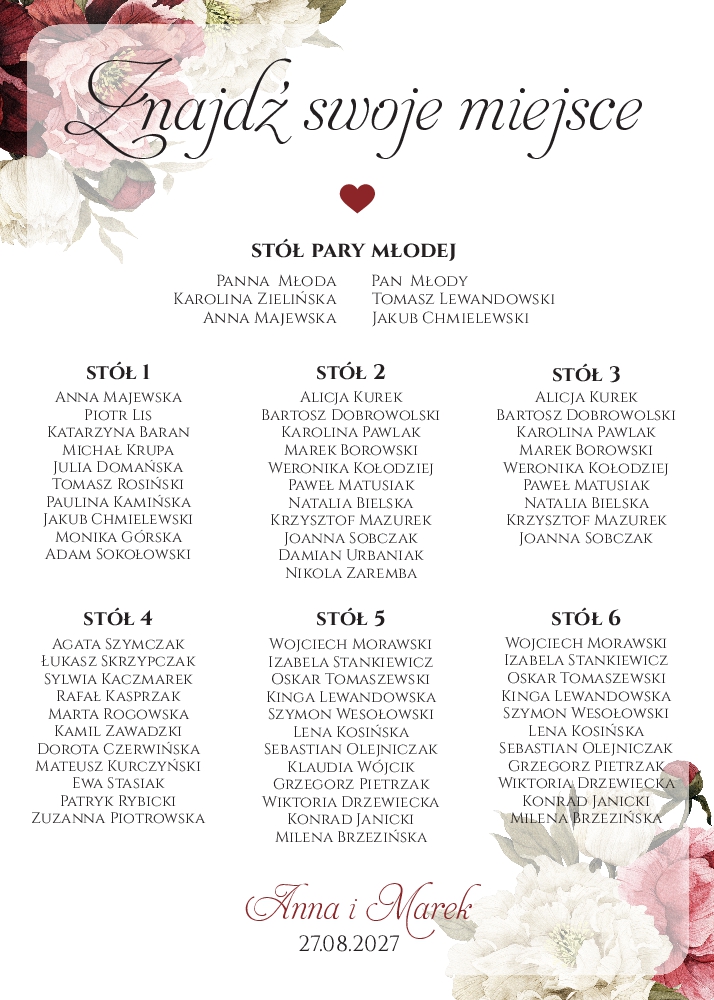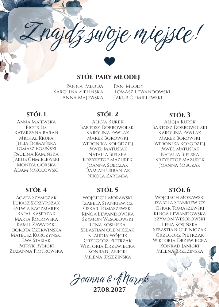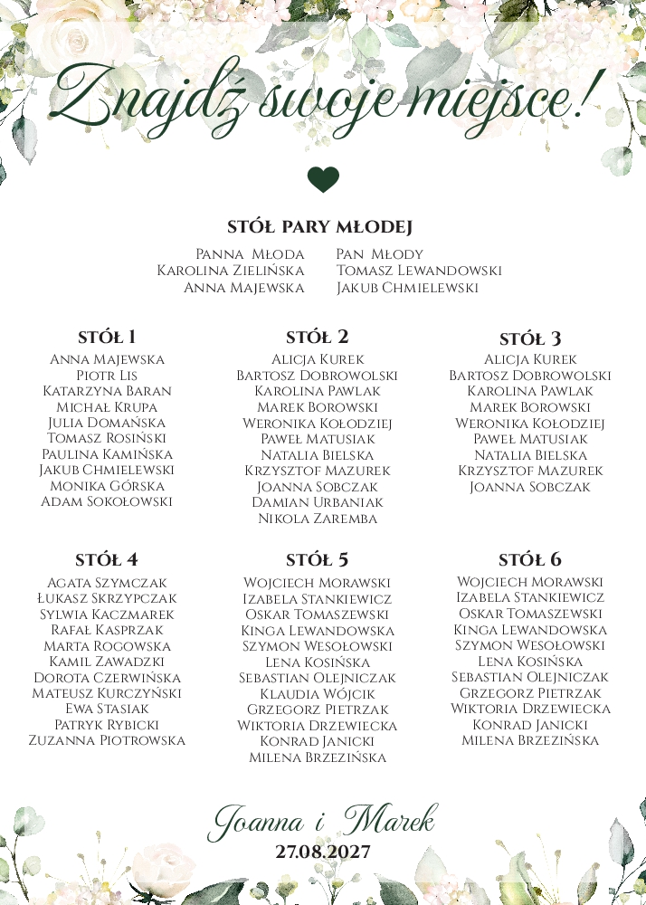 Tablica z usadzeniem gości 50x70cm POZIOM - Eliza