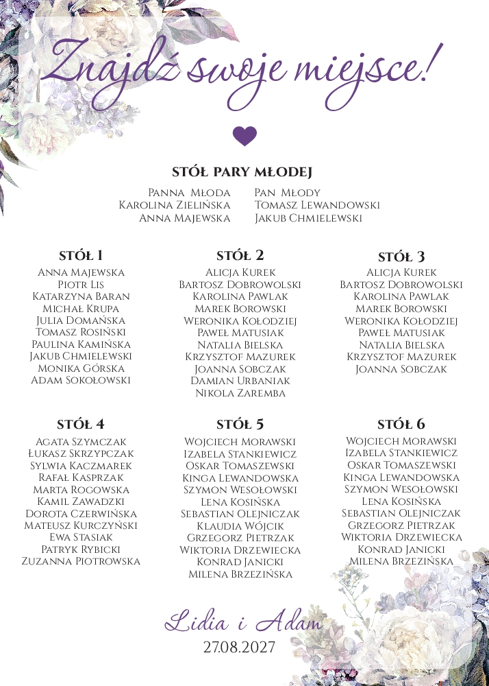Tablica z usadzeniem gości 50x70cm POZIOM - Ariana3
