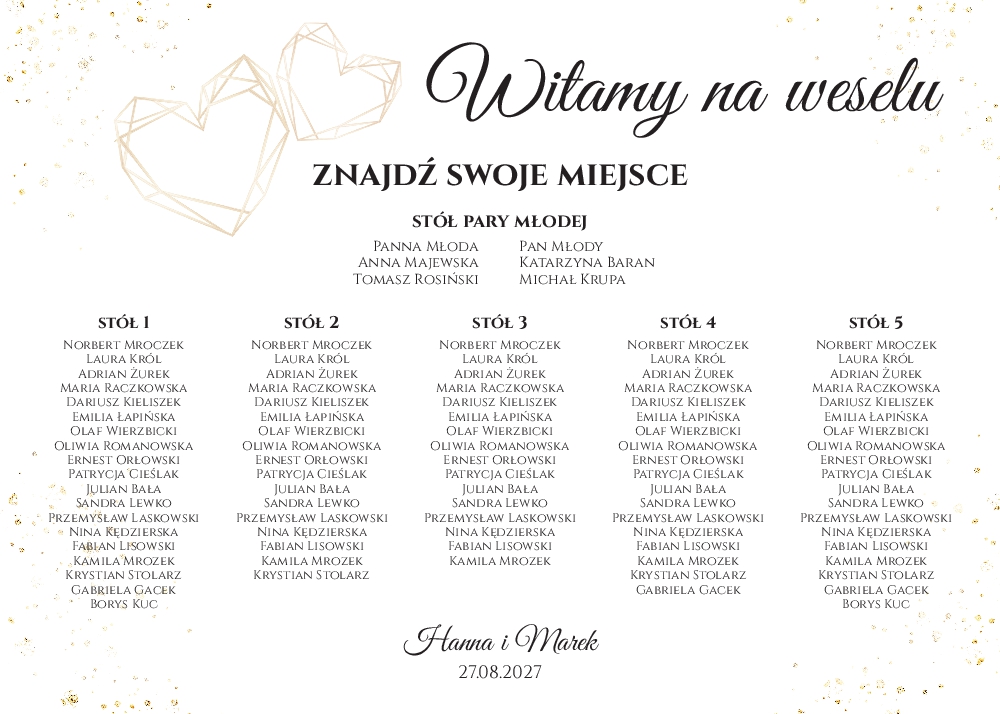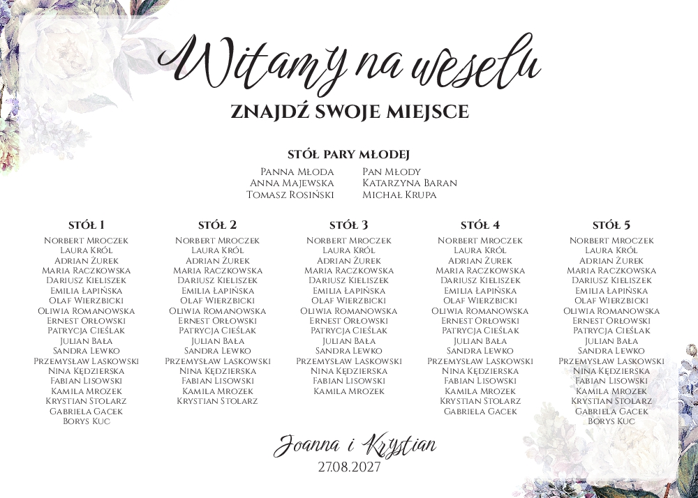 Tablica z usadzeniem gości Ariana3 - wzór 1