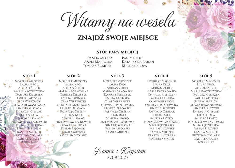 Tablica z usadzeniem gości 50x70cm POZIOM - Eliza
