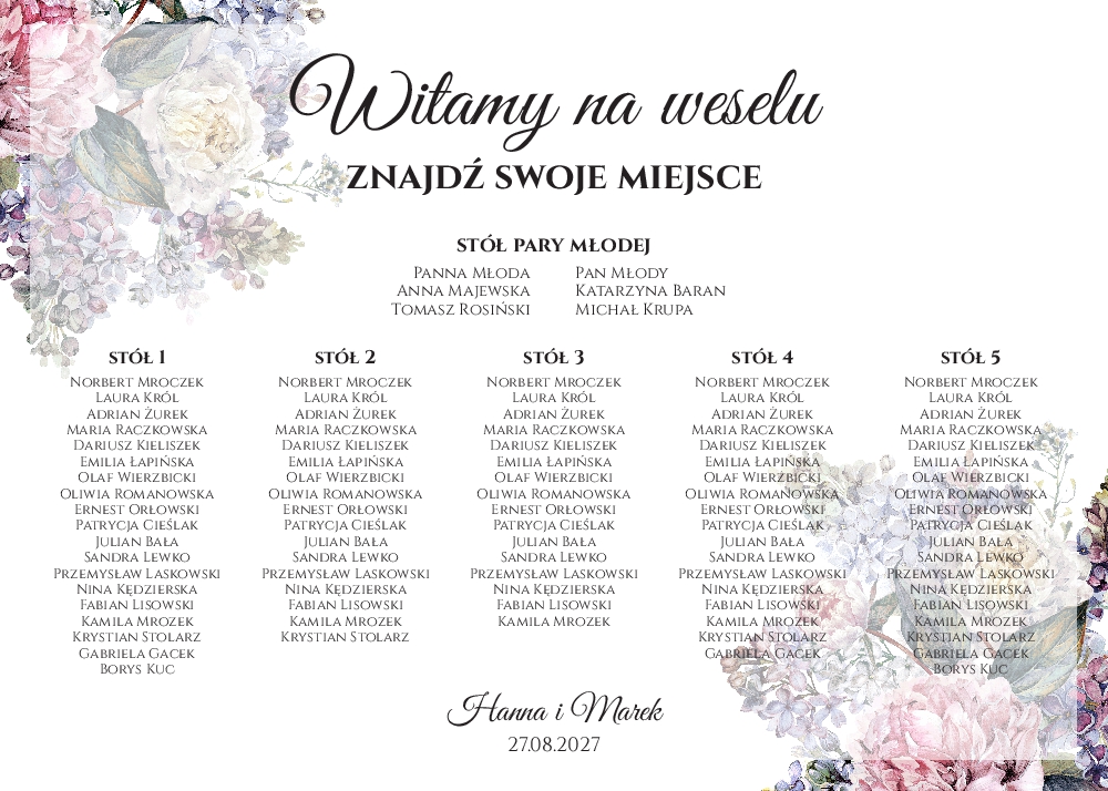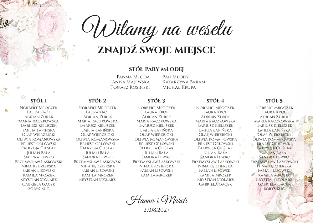 Tablica z usadzeniem gości 50x70cm POZIOM - Eliza