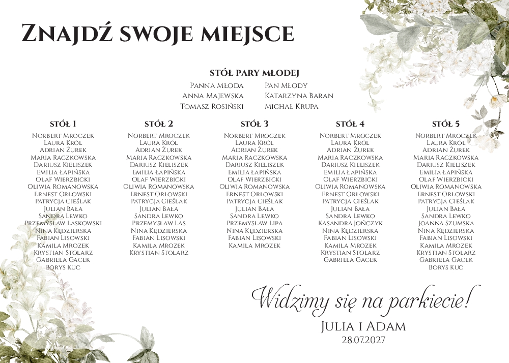 (Tablica z usadzeniem gości 50x70cm POZIOM - Eliza)