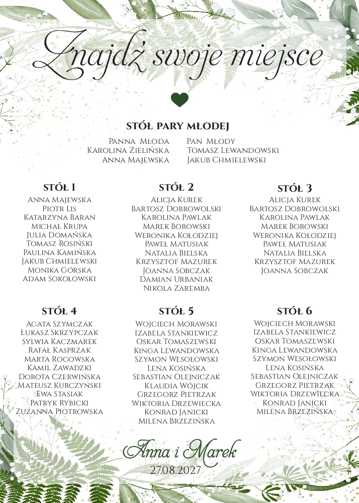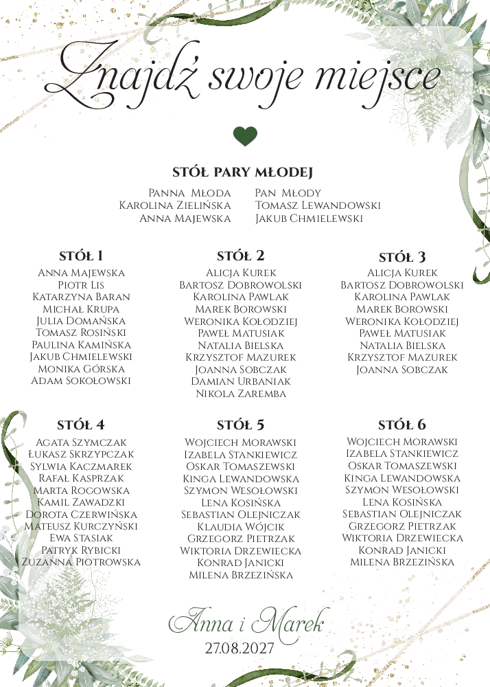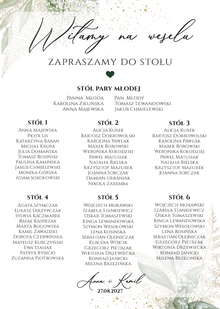 Tablica z usadzeniem gości 50x70cm POZIOM - Eliza