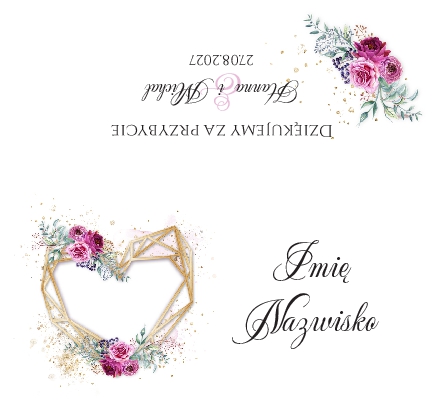 Zaproszenia ślubne składane - Rozalia - ze złotym serduszkiem
