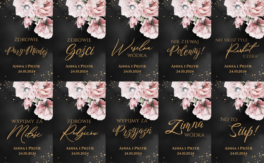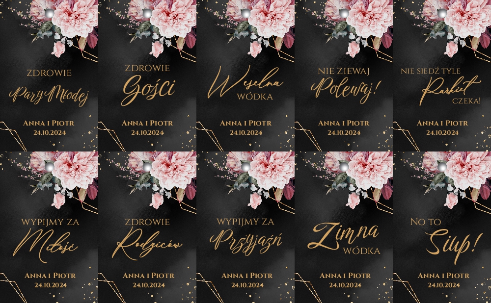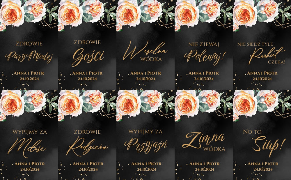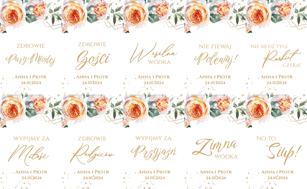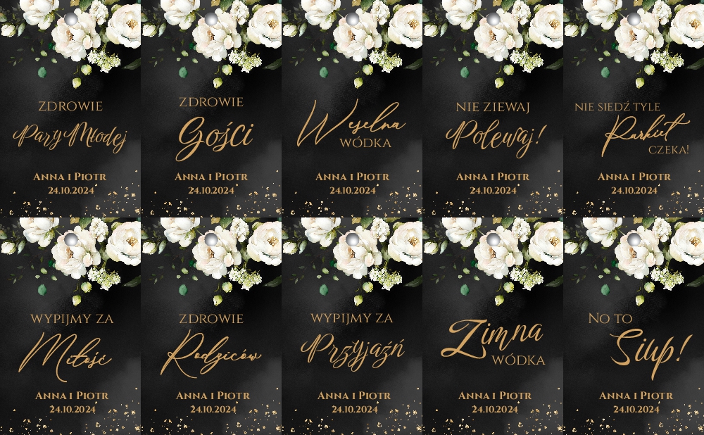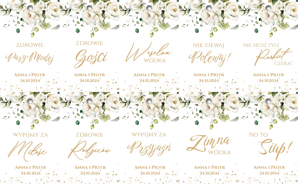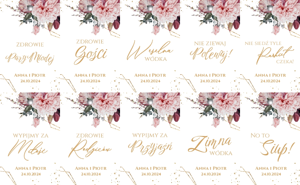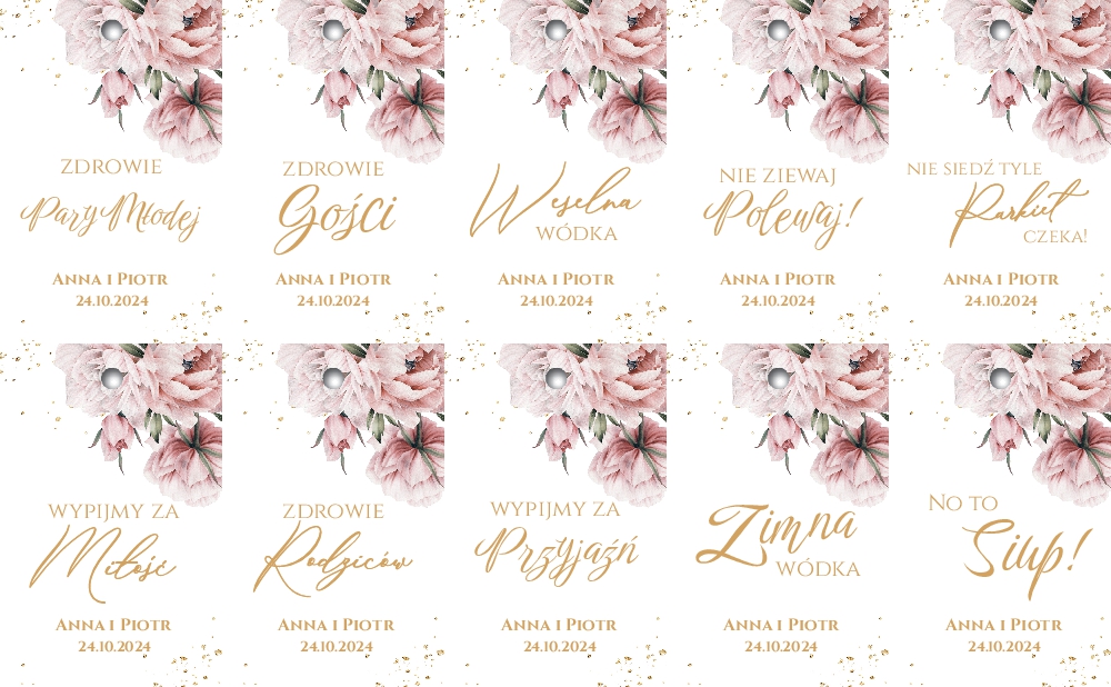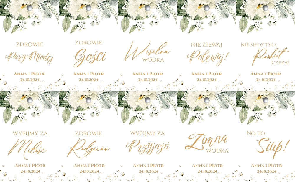 Naklejki na wódkę weselną 8szt - Gipsówka