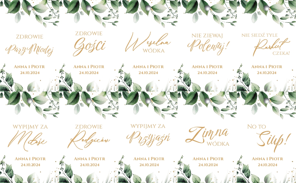 Naklejki na wódkę weselną 8szt - Eukaliptus