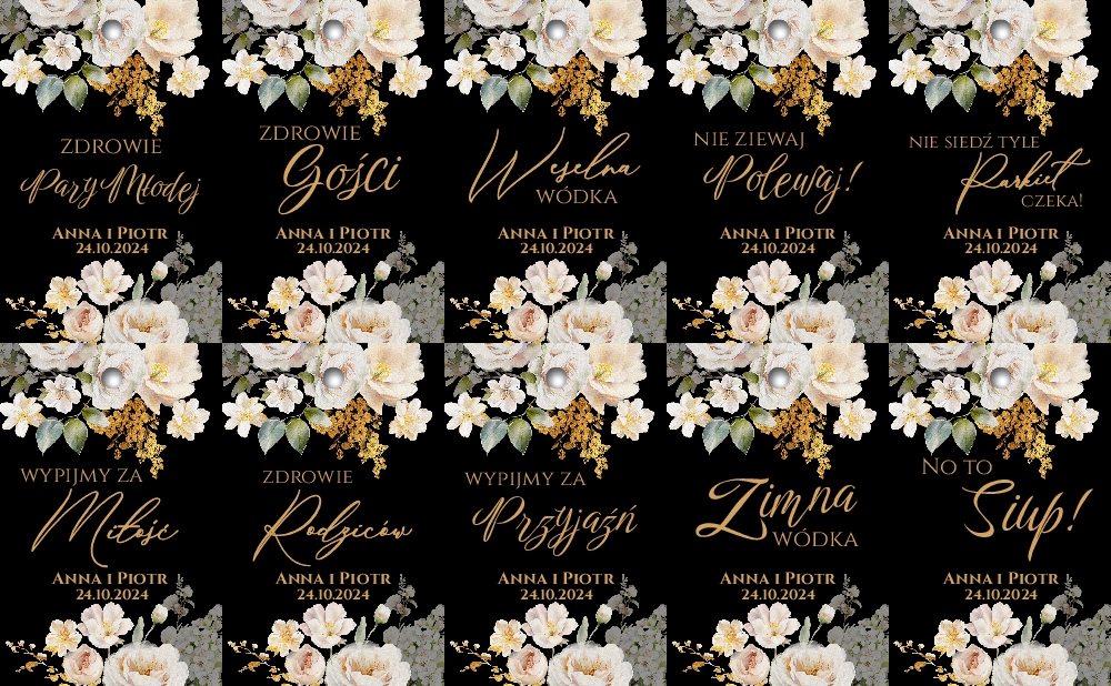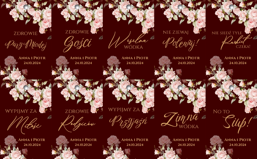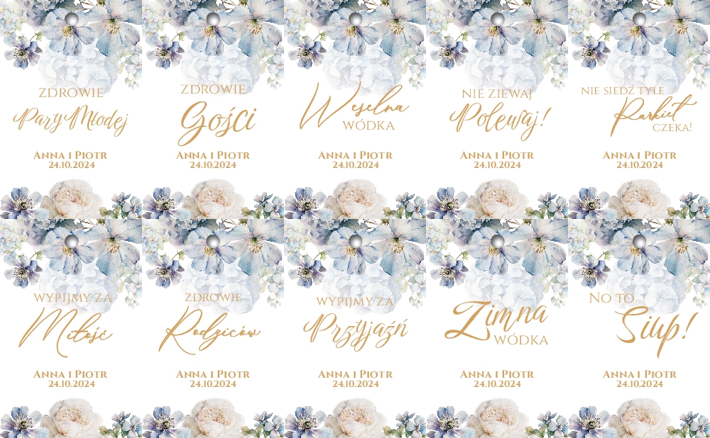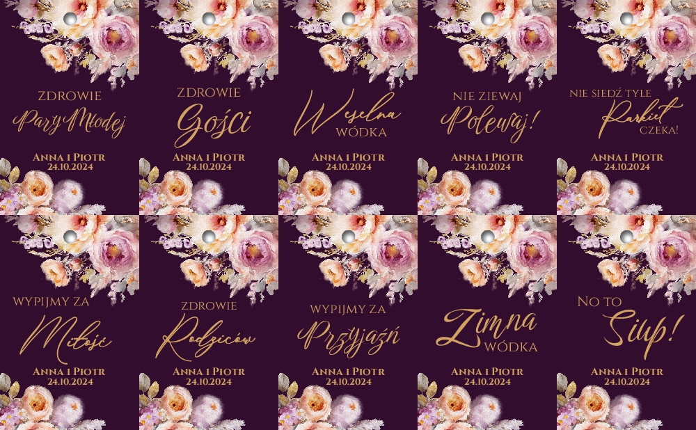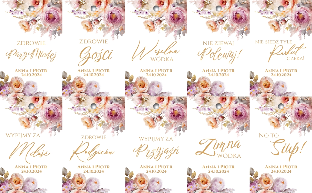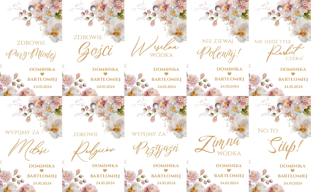 Naklejki na wódkę weselną 8szt - Gipsówka