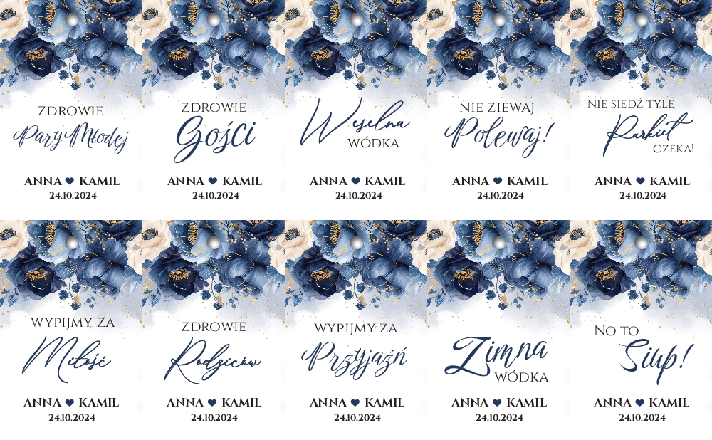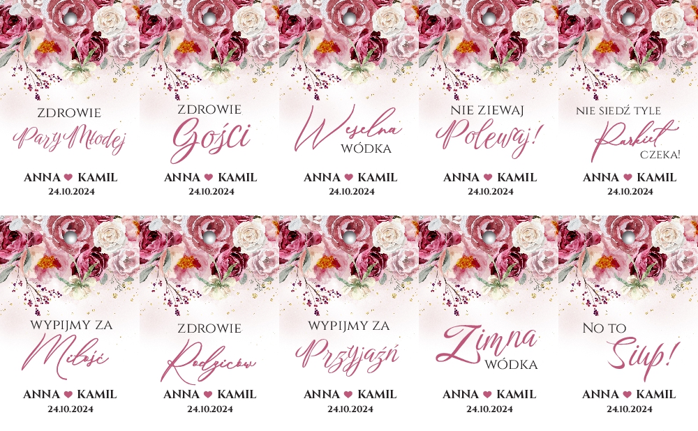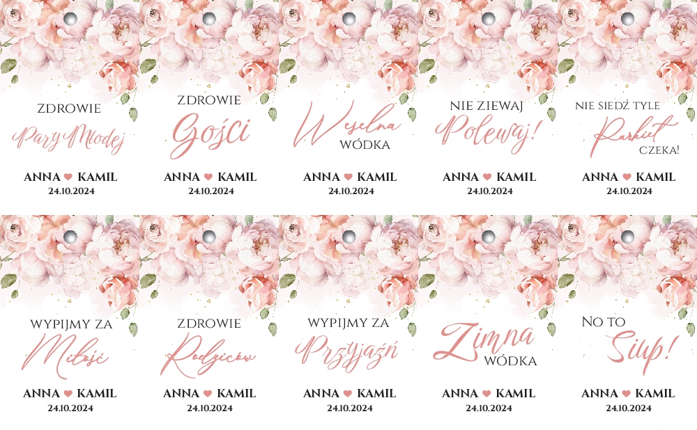 Naklejki na wódkę weselną 8szt - Gipsówka