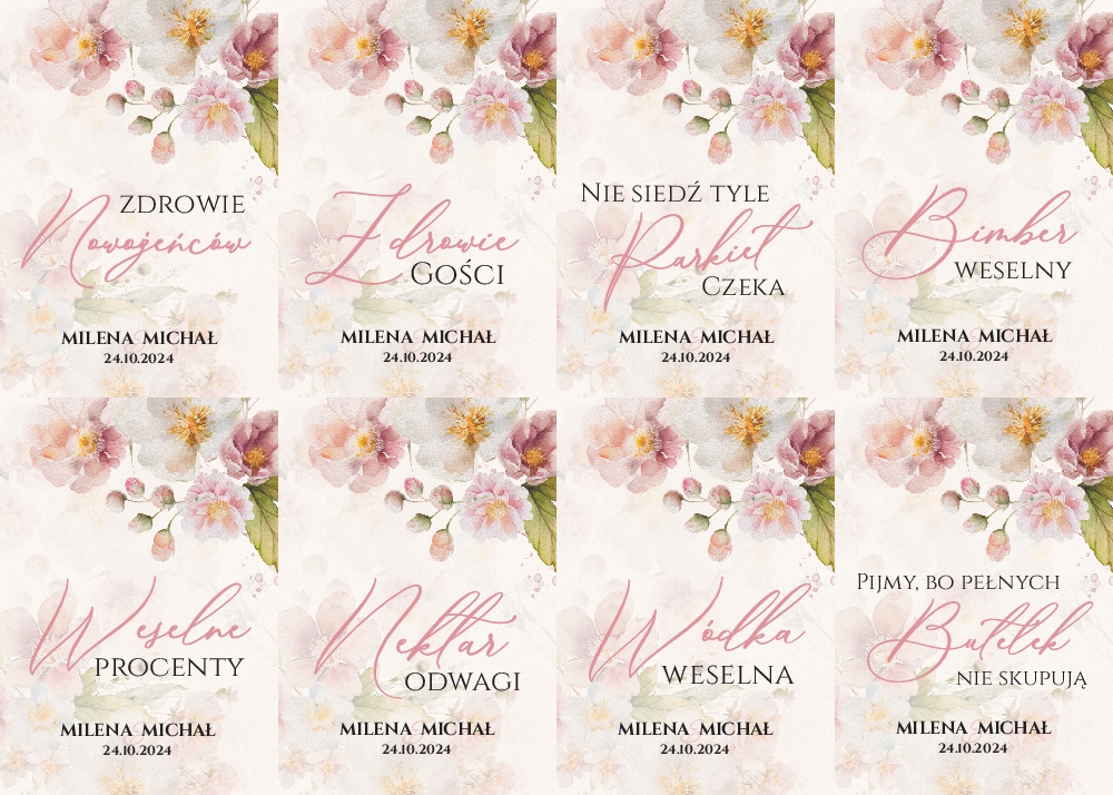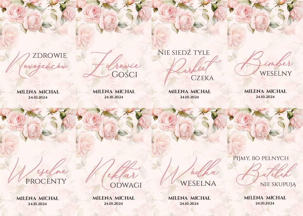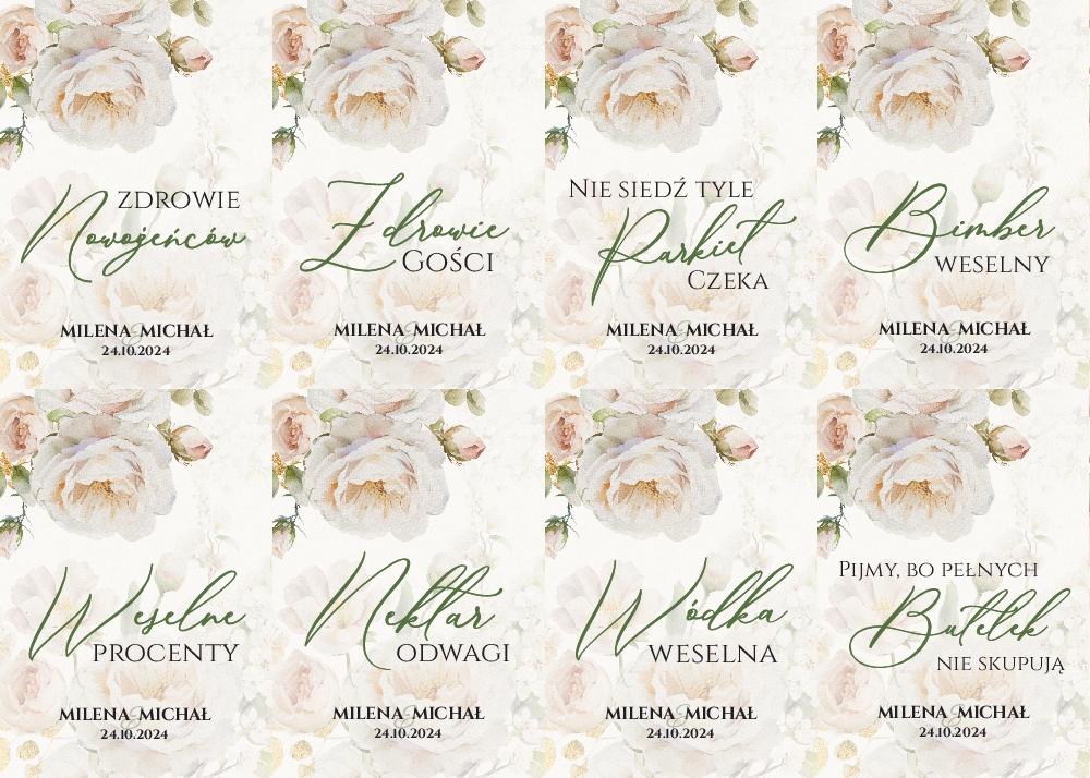 (Naklejki na butelki weselne 8szt - Diana)