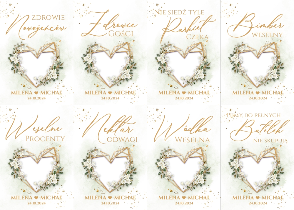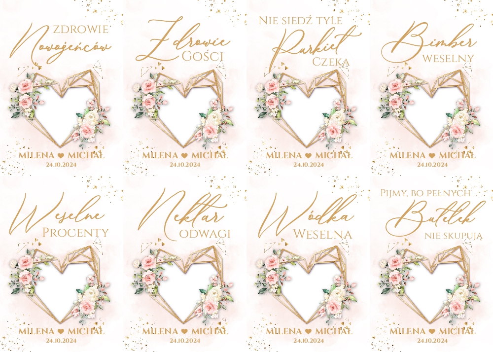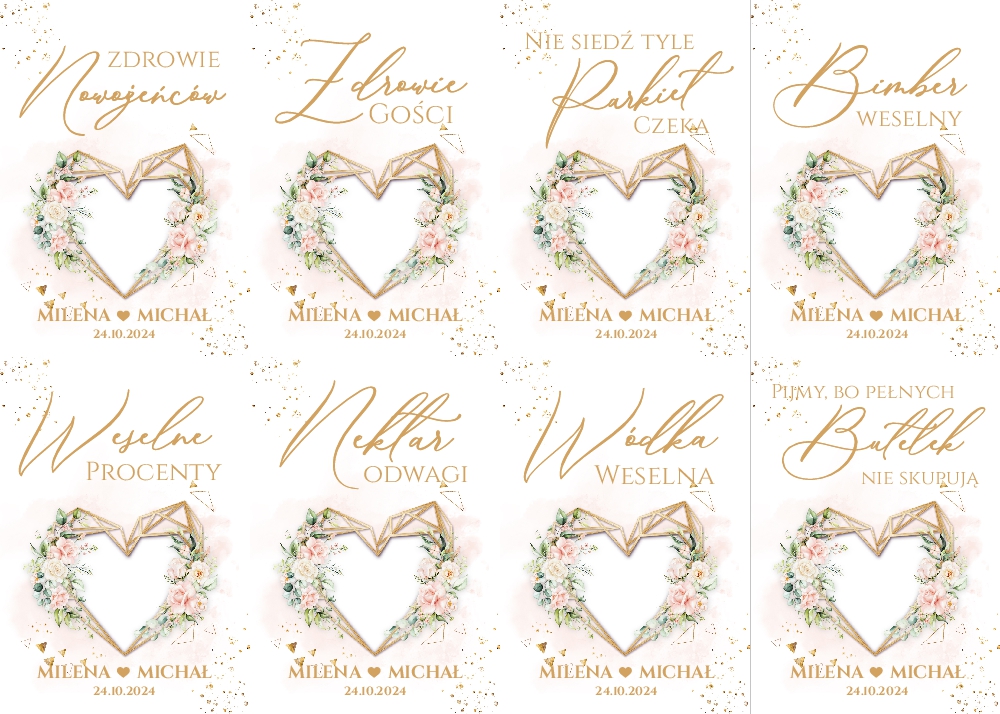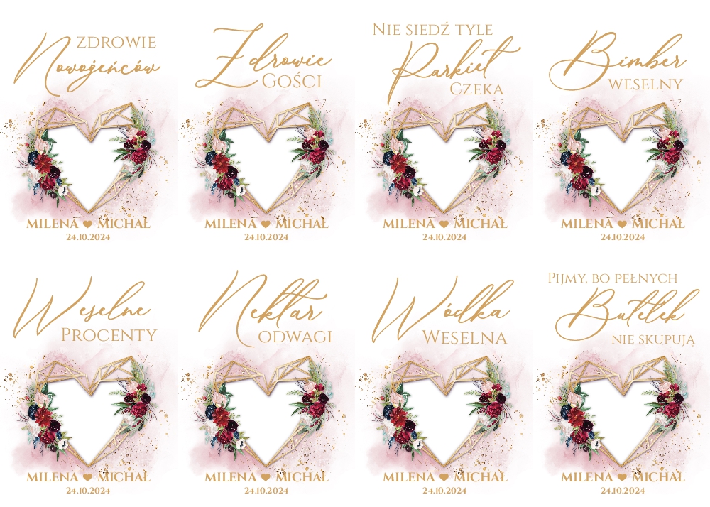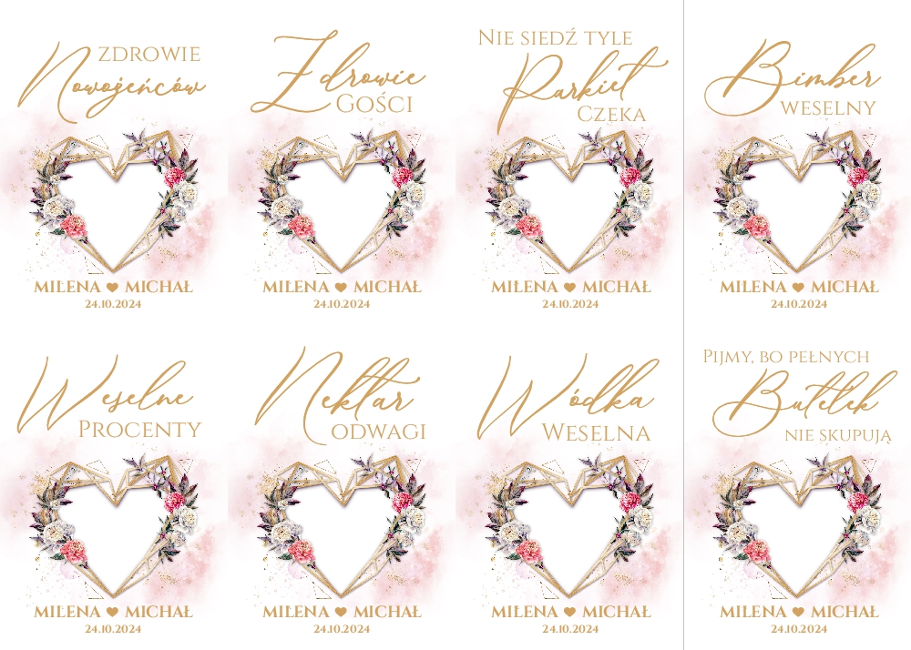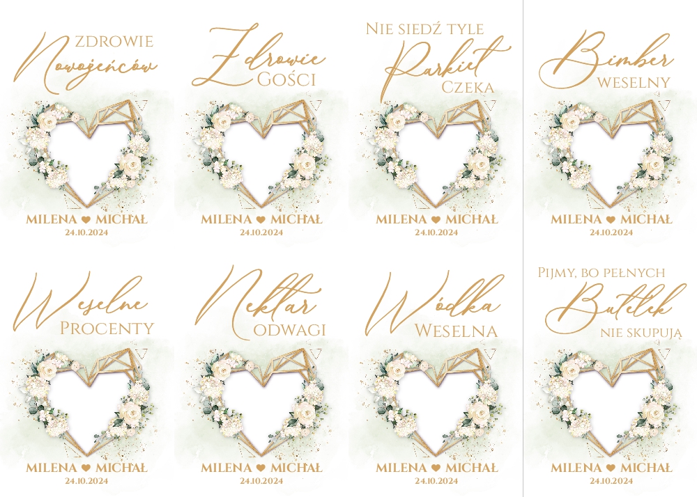 Naklejki na wódkę weselną 8szt - Dalia