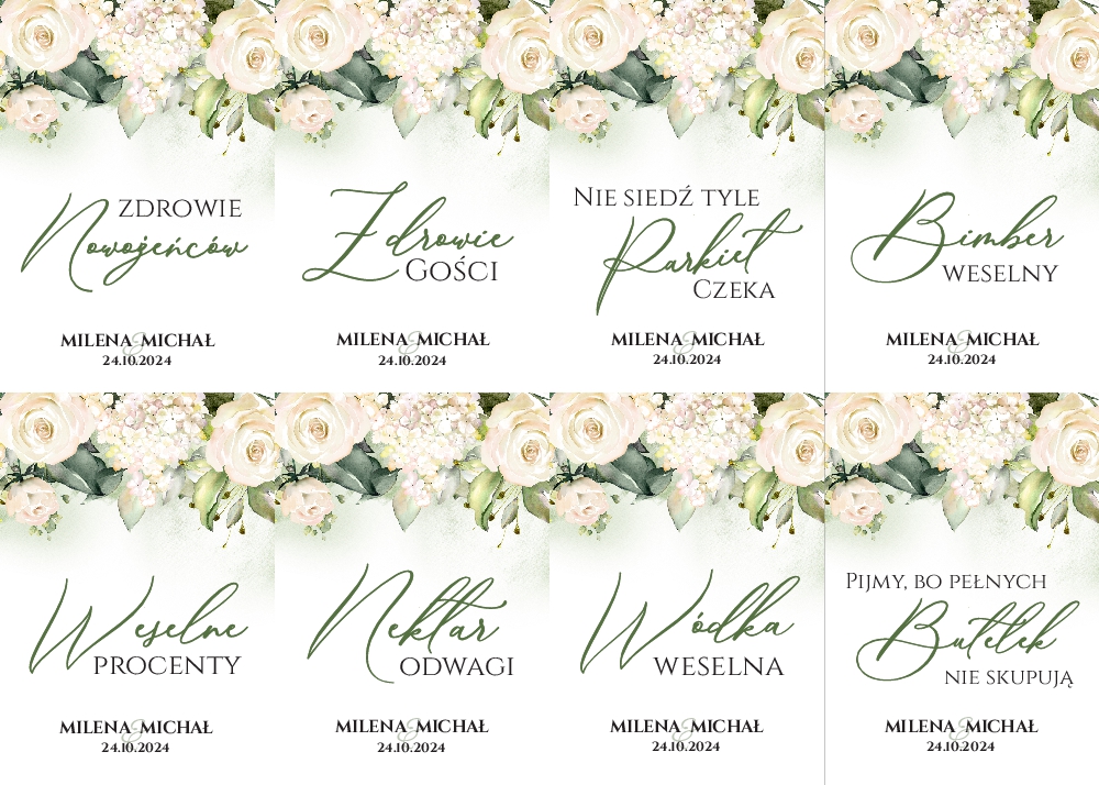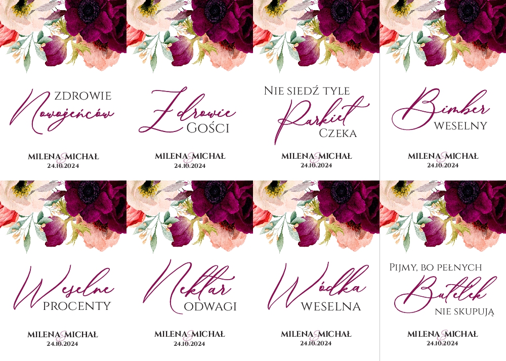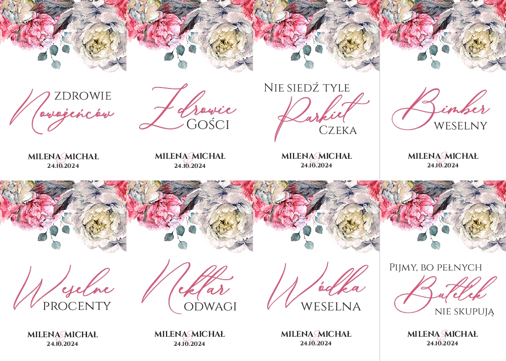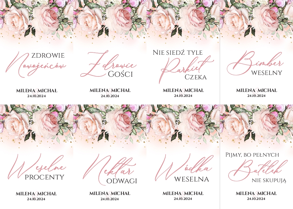 Naklejki na wódkę weselną 8szt - Irma