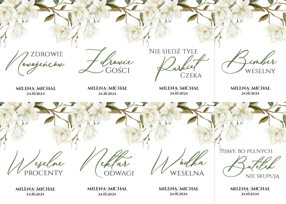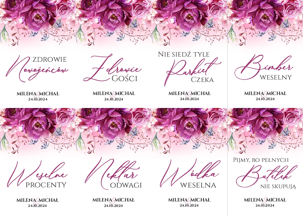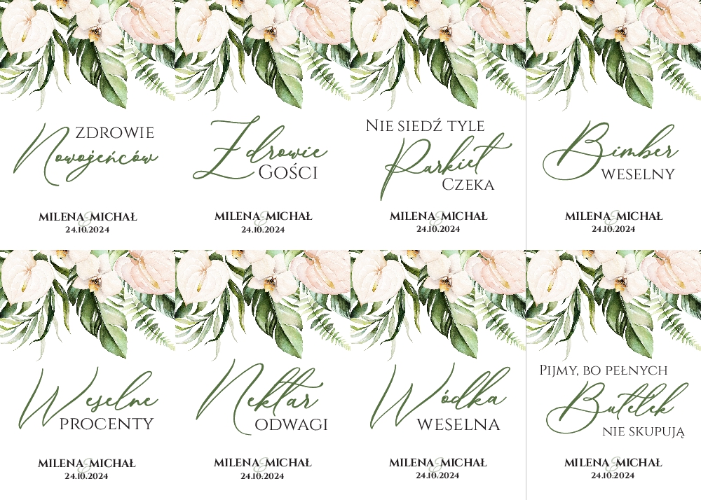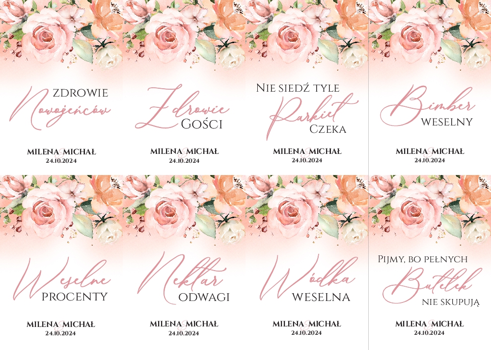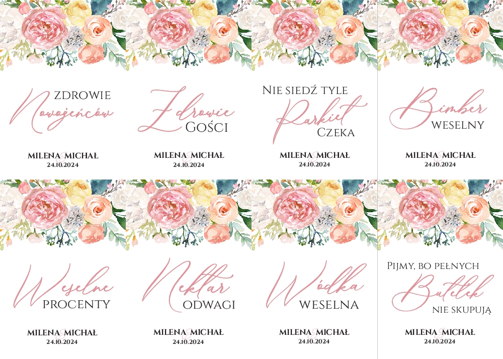 Naklejki na wódkę weselną 8szt - Irma