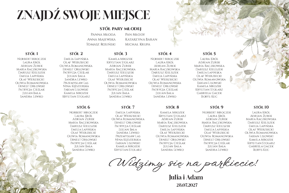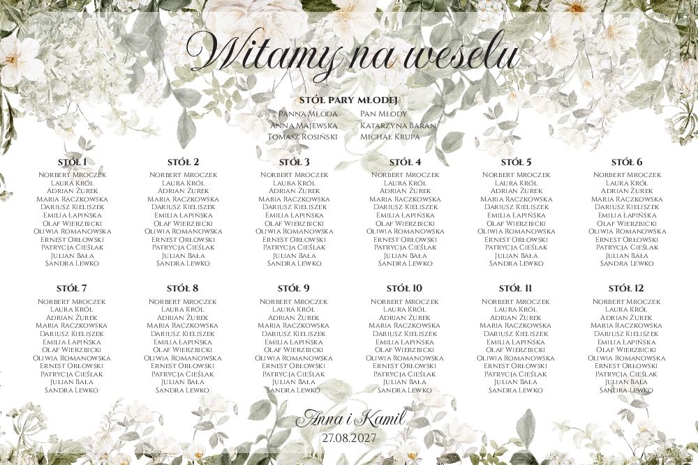 (Plan stołów weselny Tablica na wesele 60x90cm - Eliza)