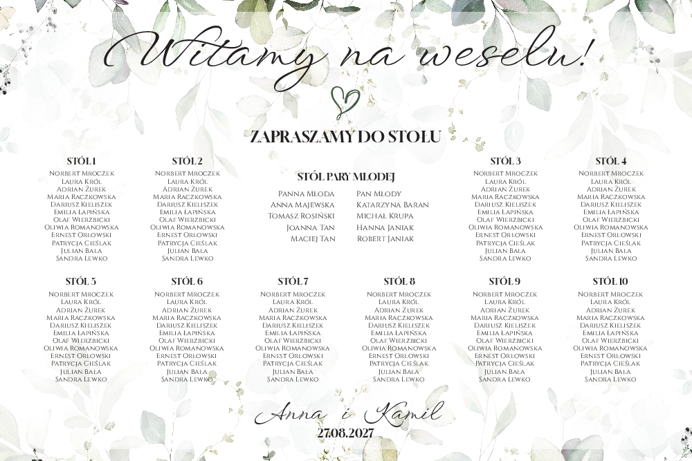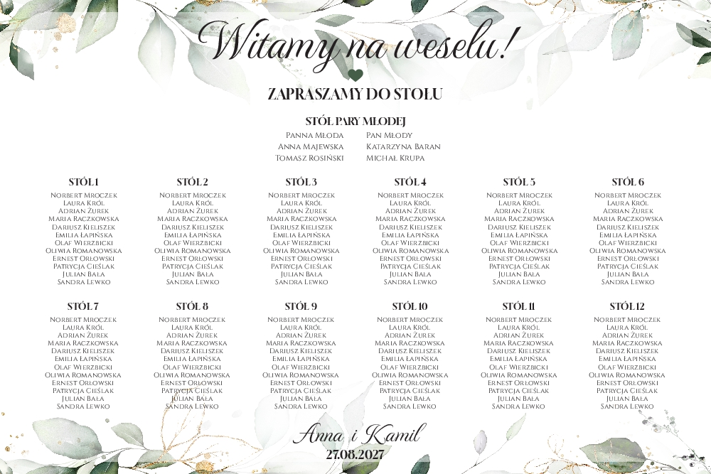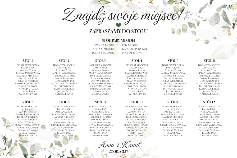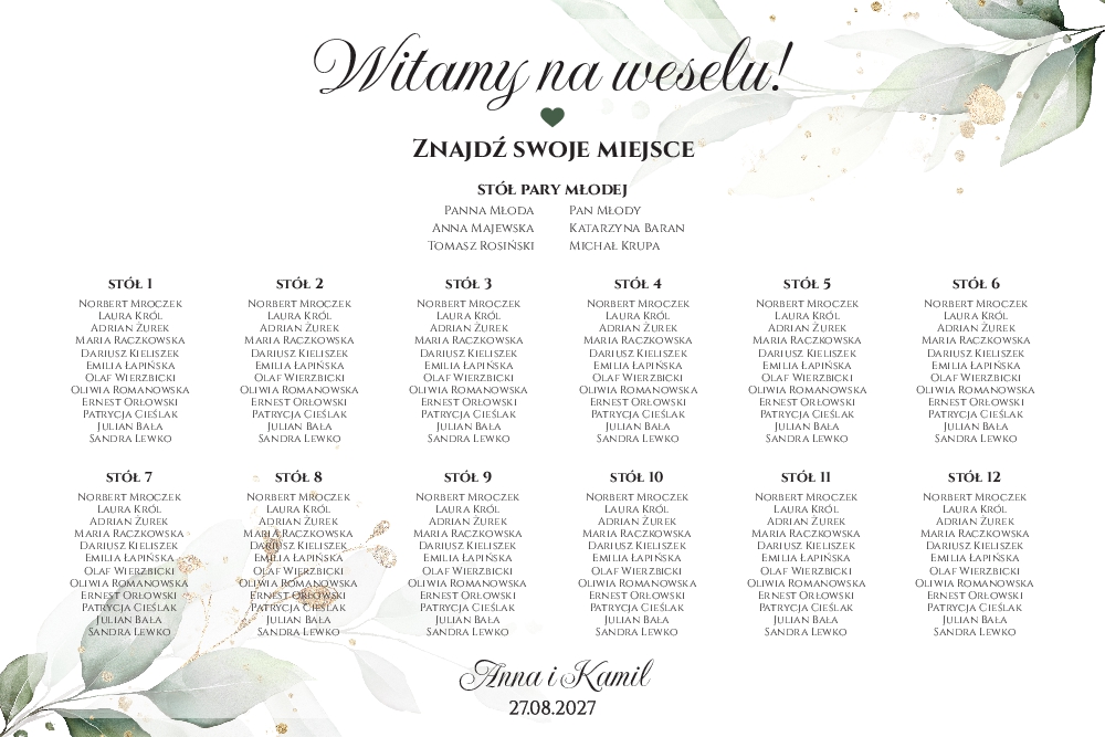 Plan stołów weselny Tablica na wesele 60x90cm - Eukaliptus
