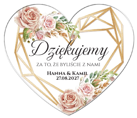 Zaproszenia ślubne składane - Rozalia - ze złotym serduszkiem