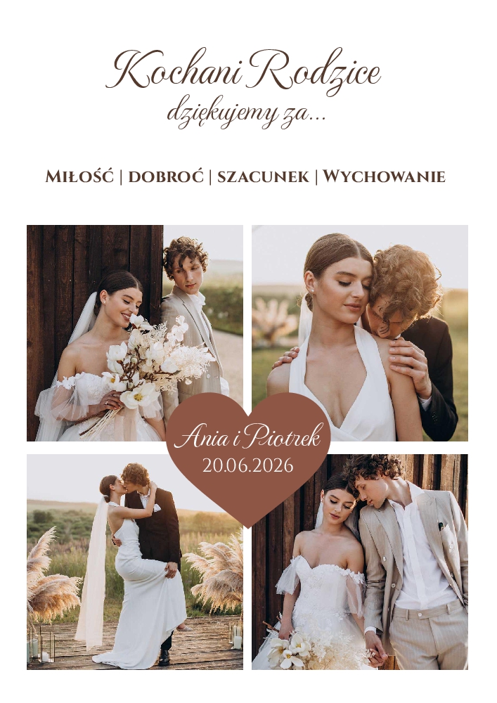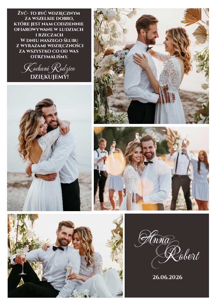 (Podziękowania dla Rodziców zdjęcia kolaż – złota ramka A3)