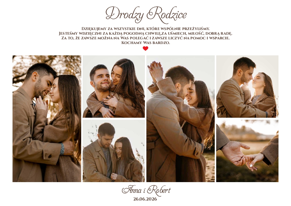 Podziękowania dla Rodziców zdjęcia kolaż - ramka złota A3
