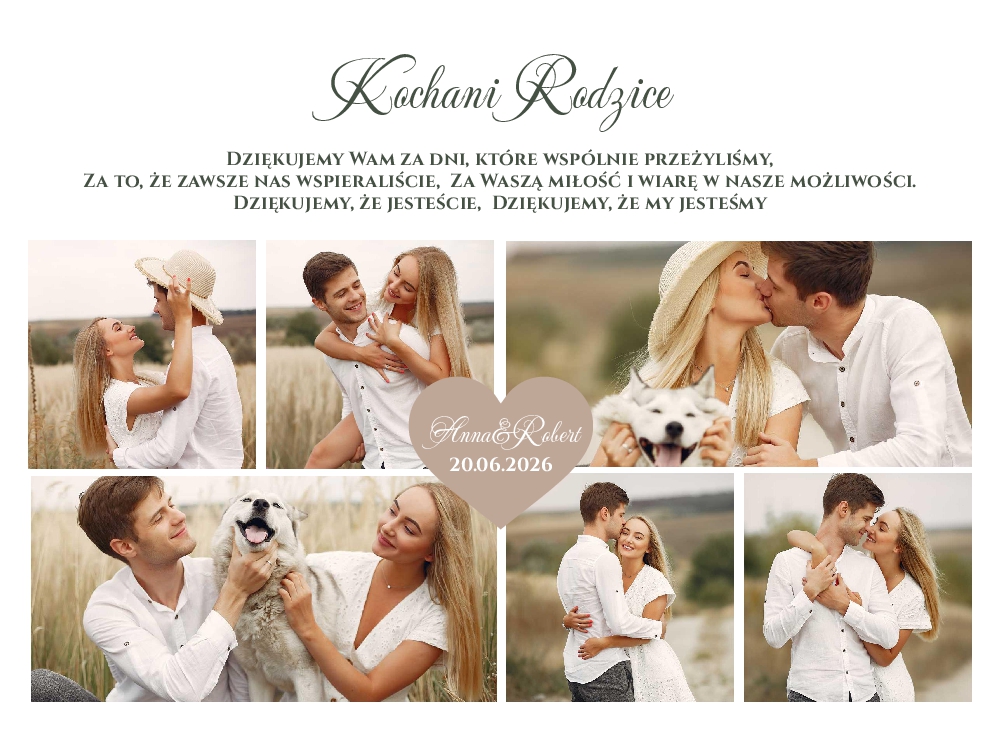 Podziękowania dla Rodziców zdjęcia kolaż – złota ramka A3