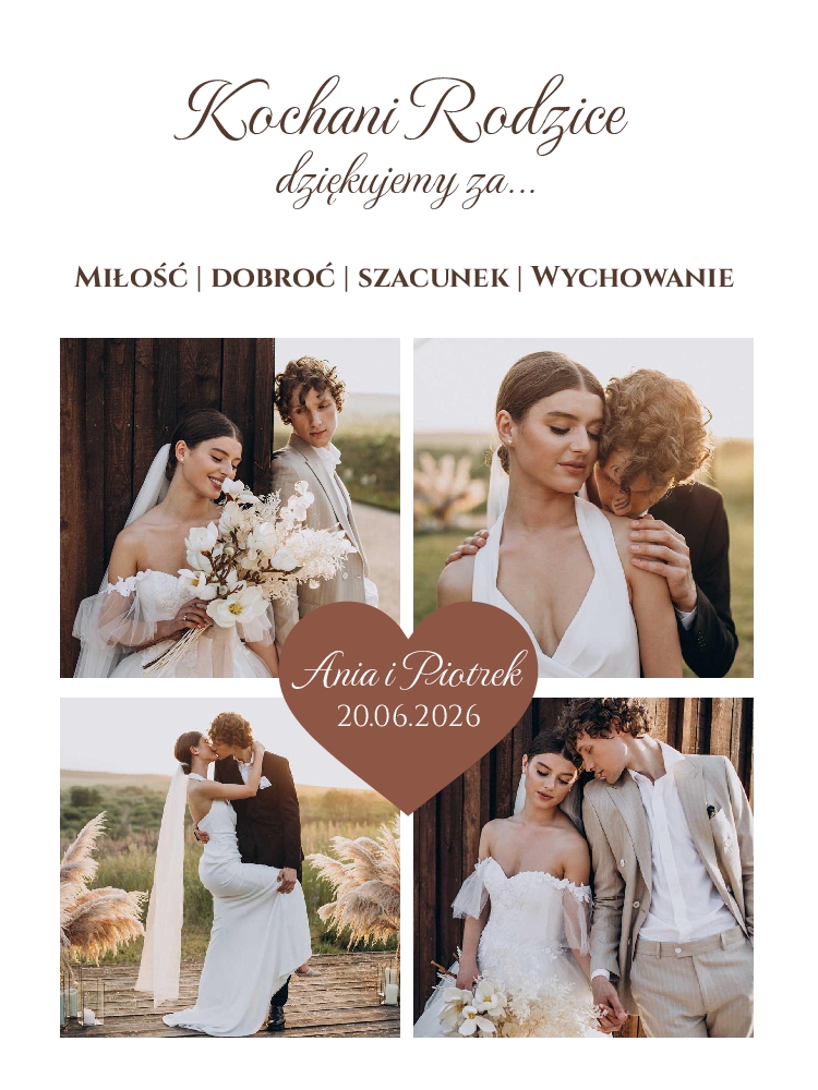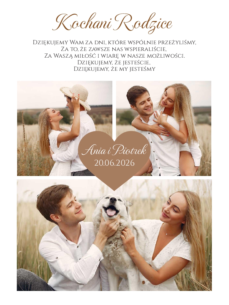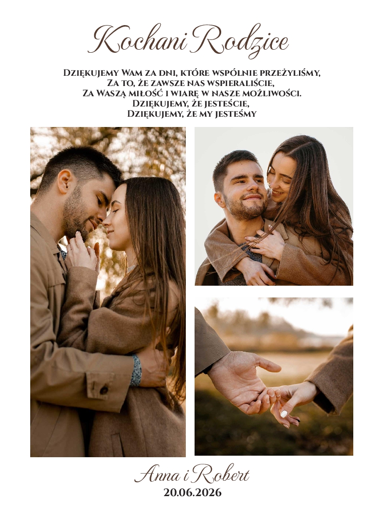 Podziękowania dla Rodziców zdjęcia kolaż - ramka złota A3