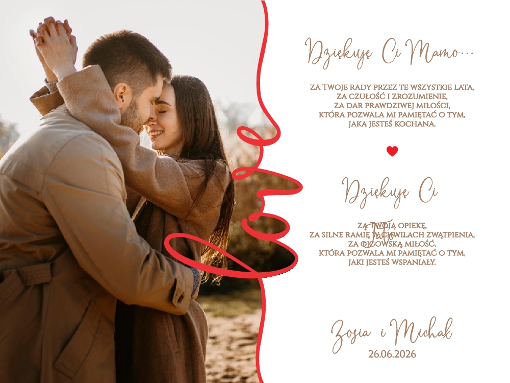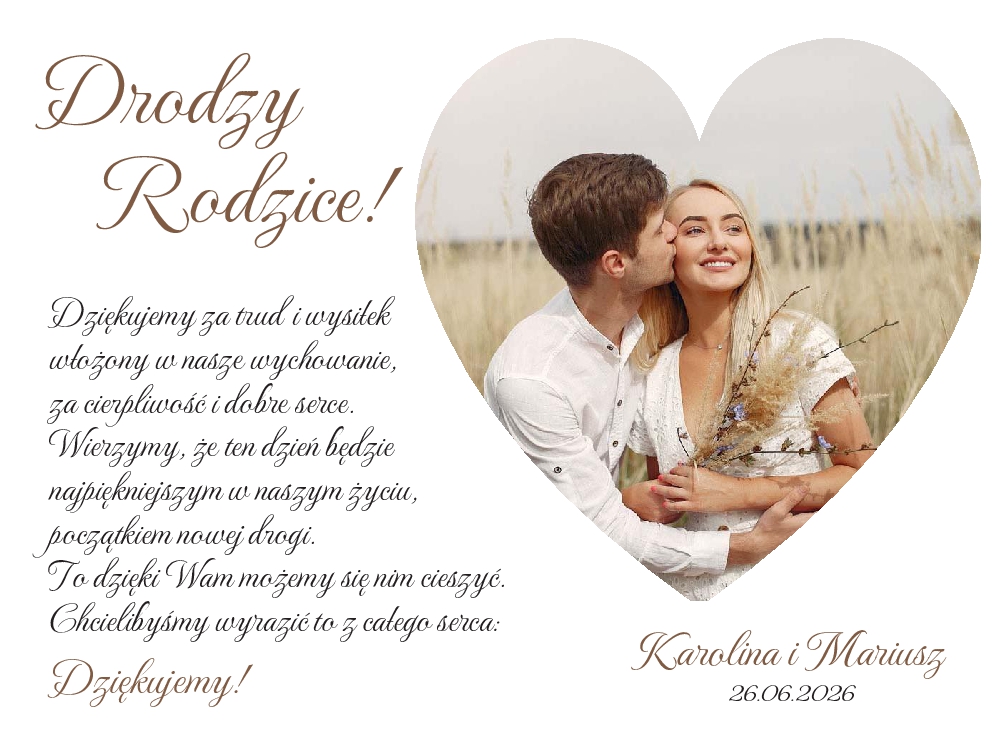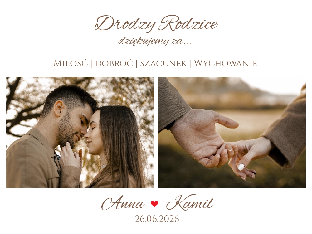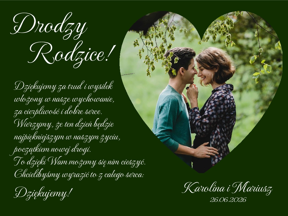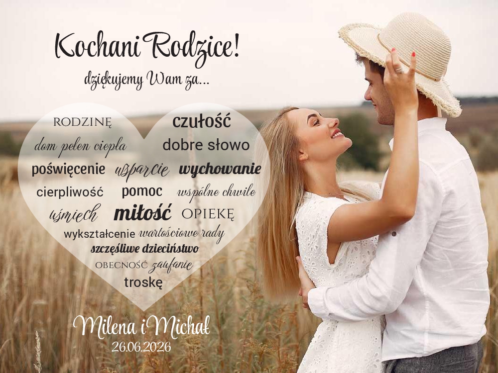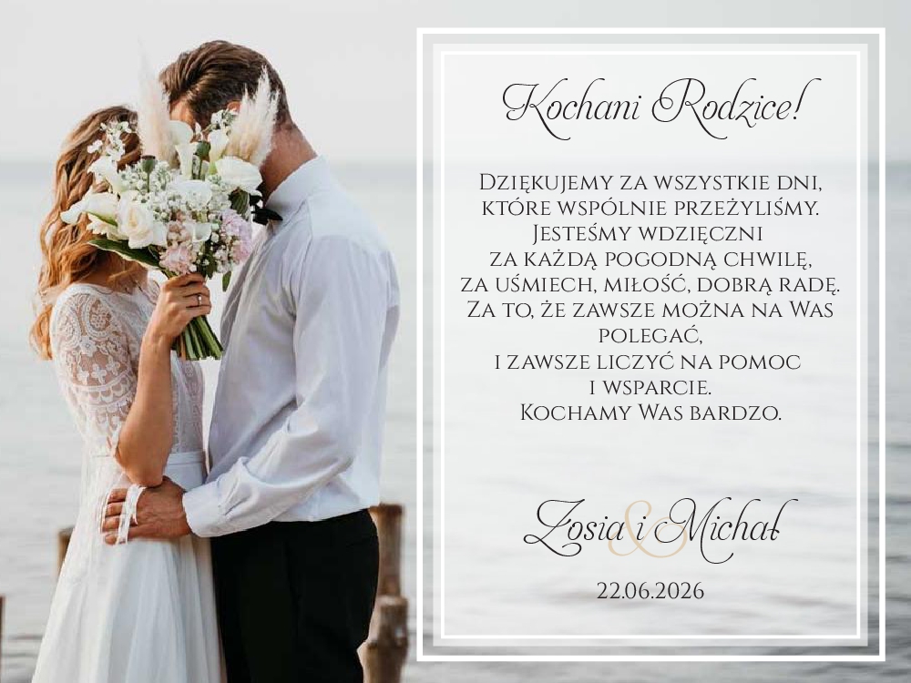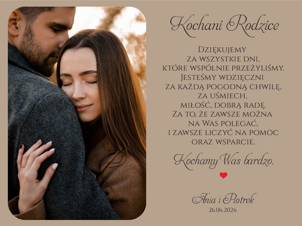 Podziękowania dla rodziców w ramce