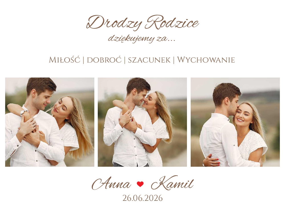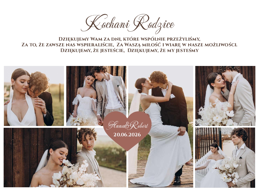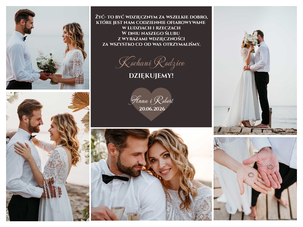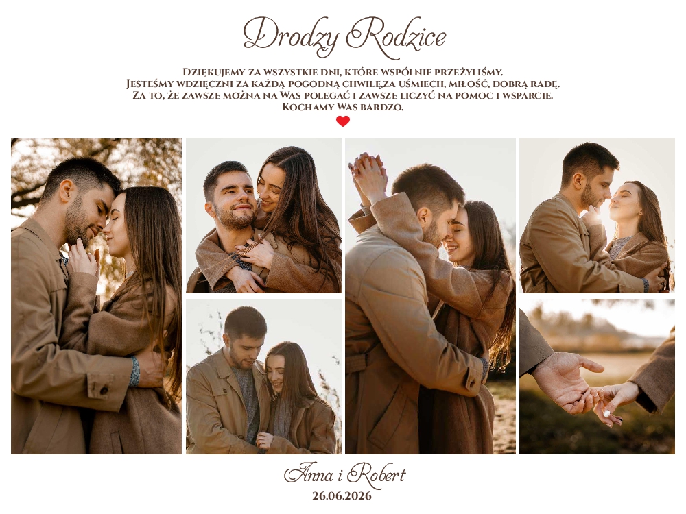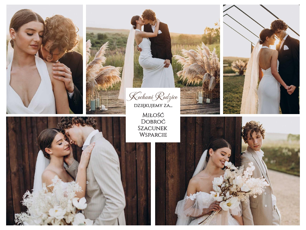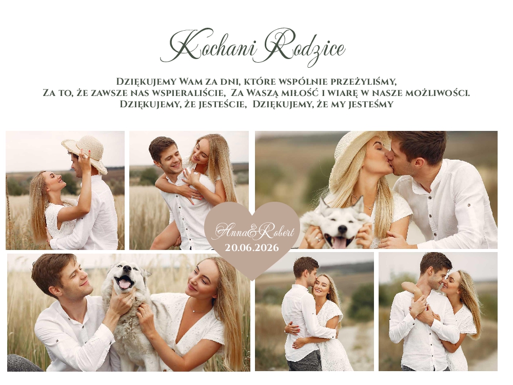 Podziękowania dla Rodziców zdjęcia kolaż - ramka złota A3