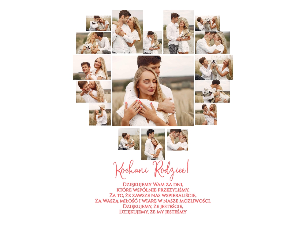 Podziękowania dla Rodziców zdjęcia kolaż – złota ramka A3