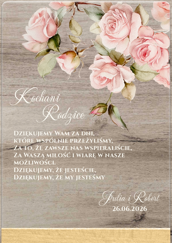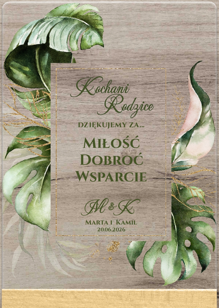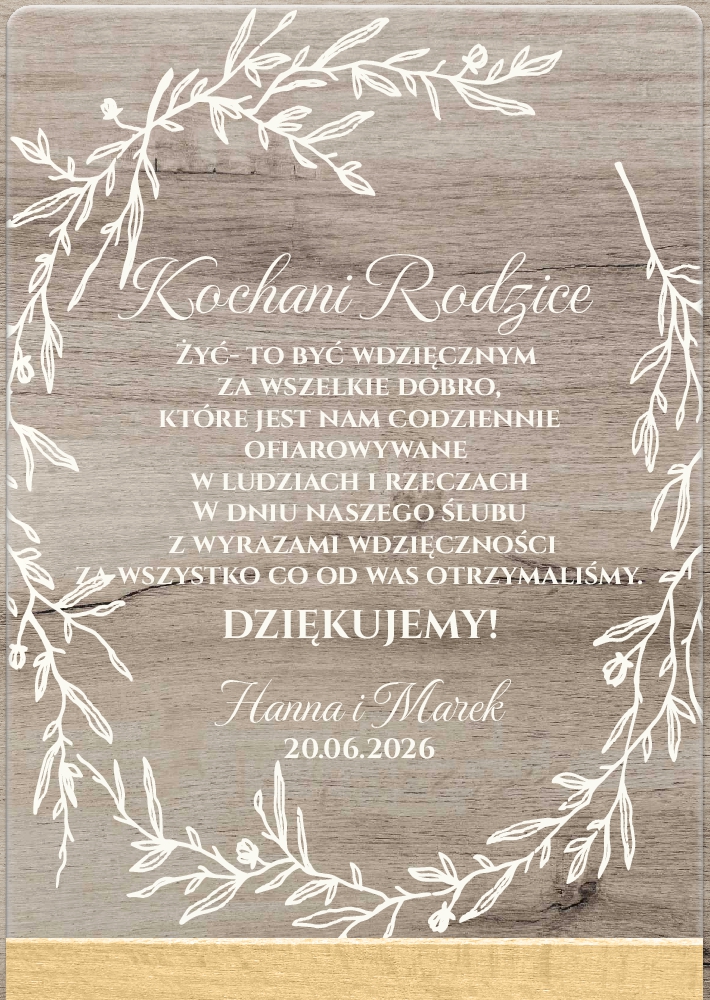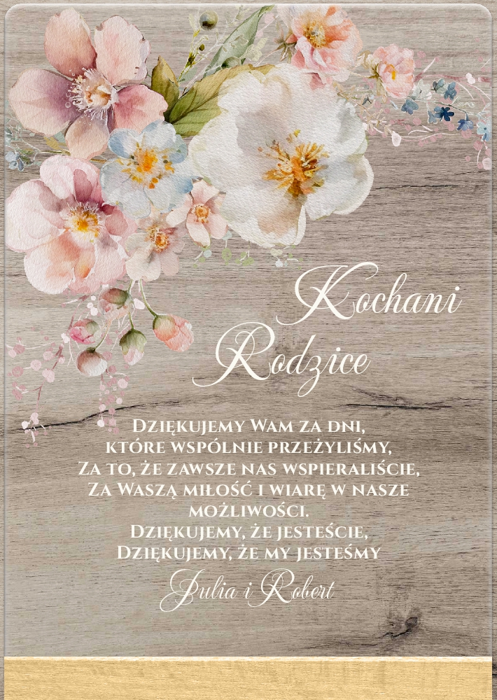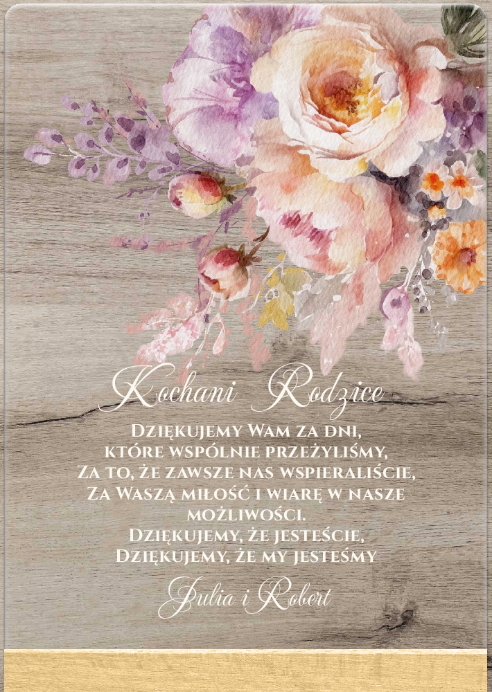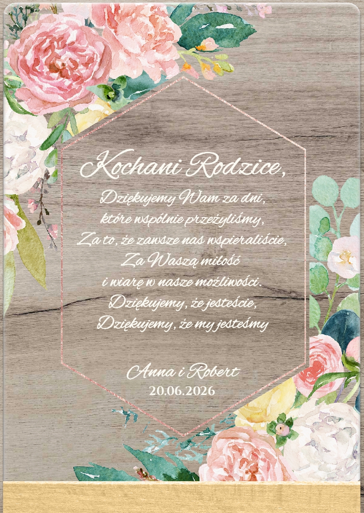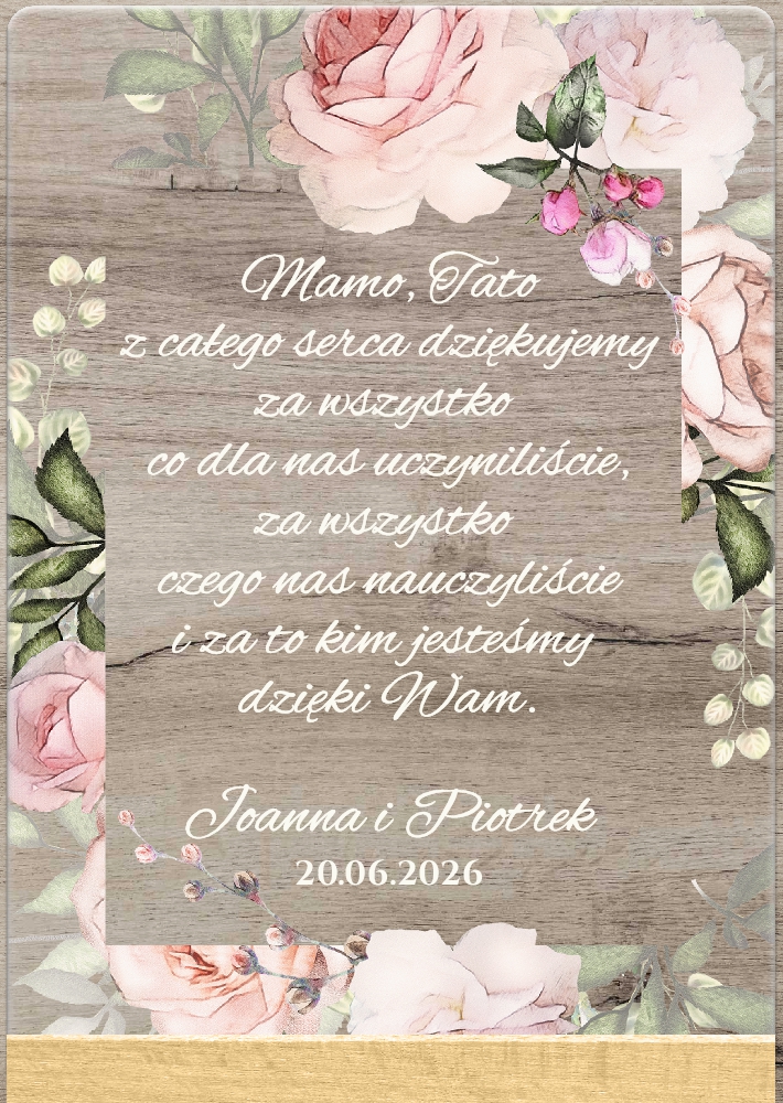 Podziękowania dla Rodziców kwiaty - pleksi A5