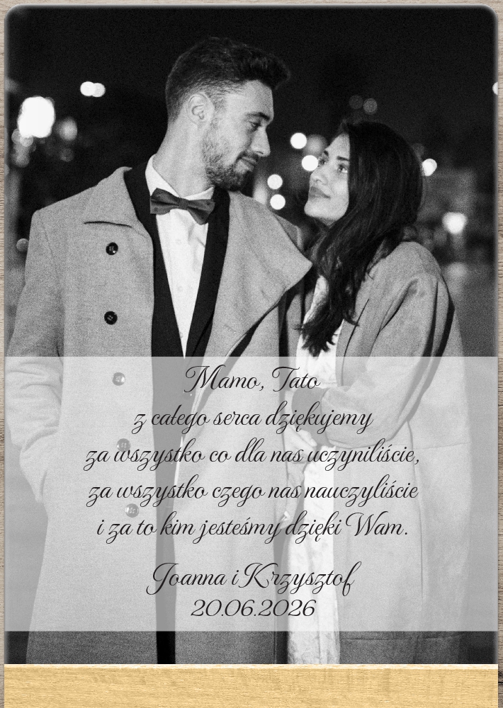 Podświetlane podziękowania dla Rodziców zdjęcia - pleksi A5