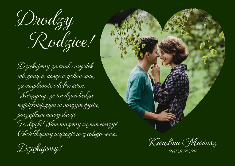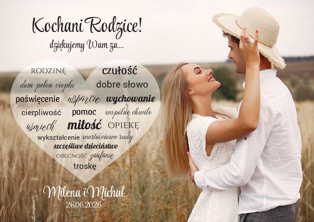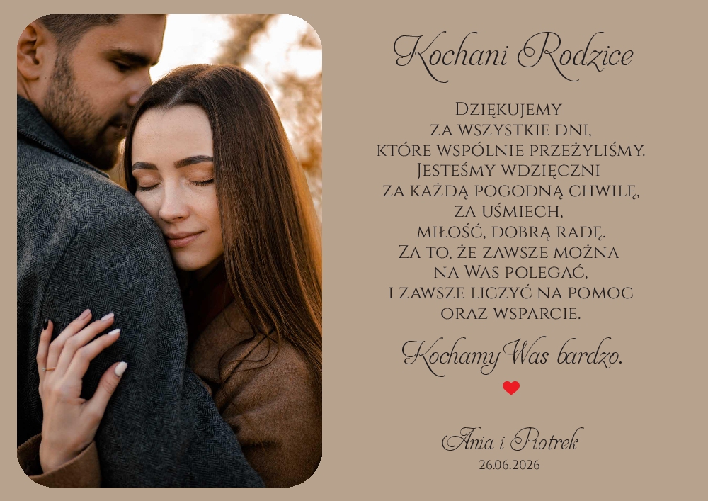 Podziękowania dla Rodziców ze zdjęciem - ramka złota A3