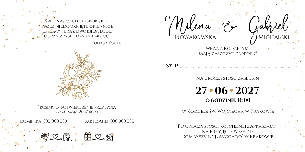 Złocone zaproszenia Ślubne - Peonia