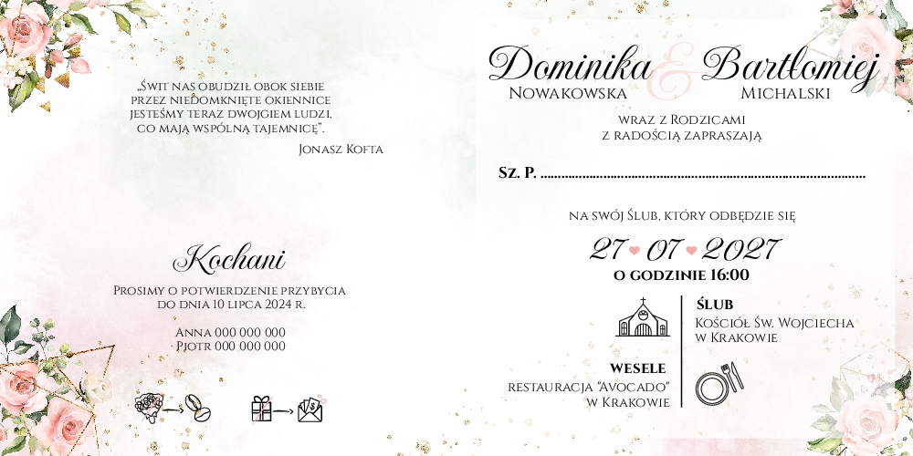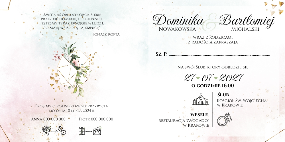 Złocone zaproszenia Ślubne ze zdjęciem - Nadia