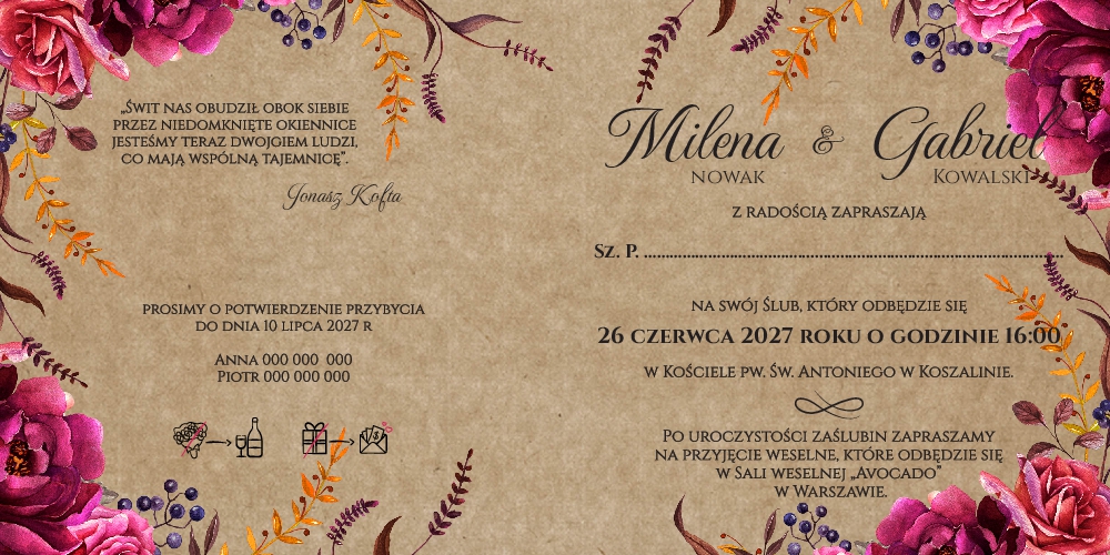 Zaproszenia Sylwia - wzór 8 przódZaproszenia Sylwia - wzór 8 wnętrzeZaproszenia Sylwia - wzór 8